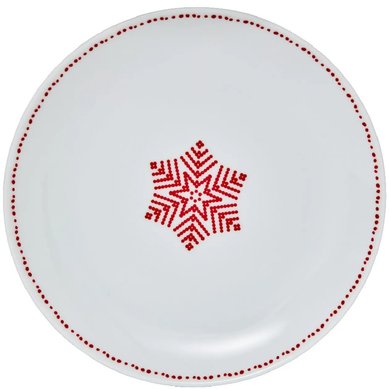 Les atouts de cette assiette à dessert blanche décor flocon rouge