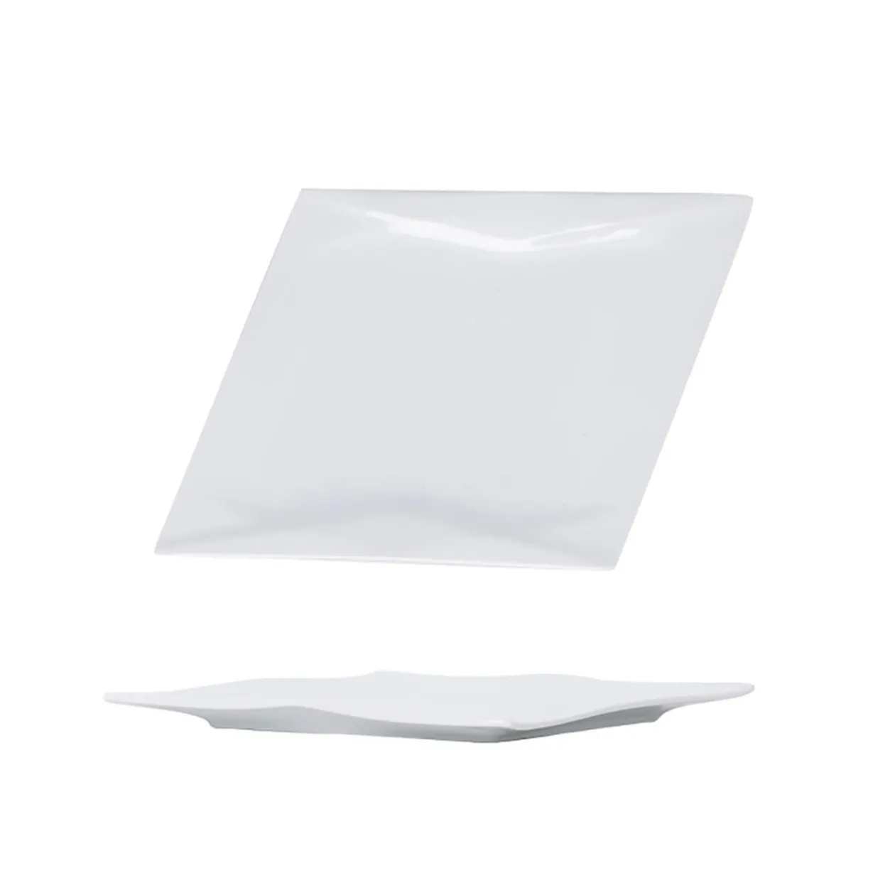 Servez de délicieux desserts dans cette assiette à dessert blanche en forme de losange.