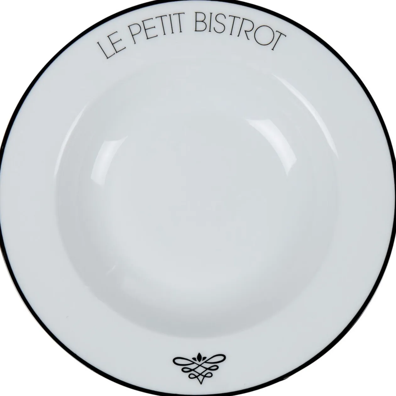 Assiette creuse blanche et noire « Le petit bistrot », dim. Ø21,5xh.3 cm, porcelaine.