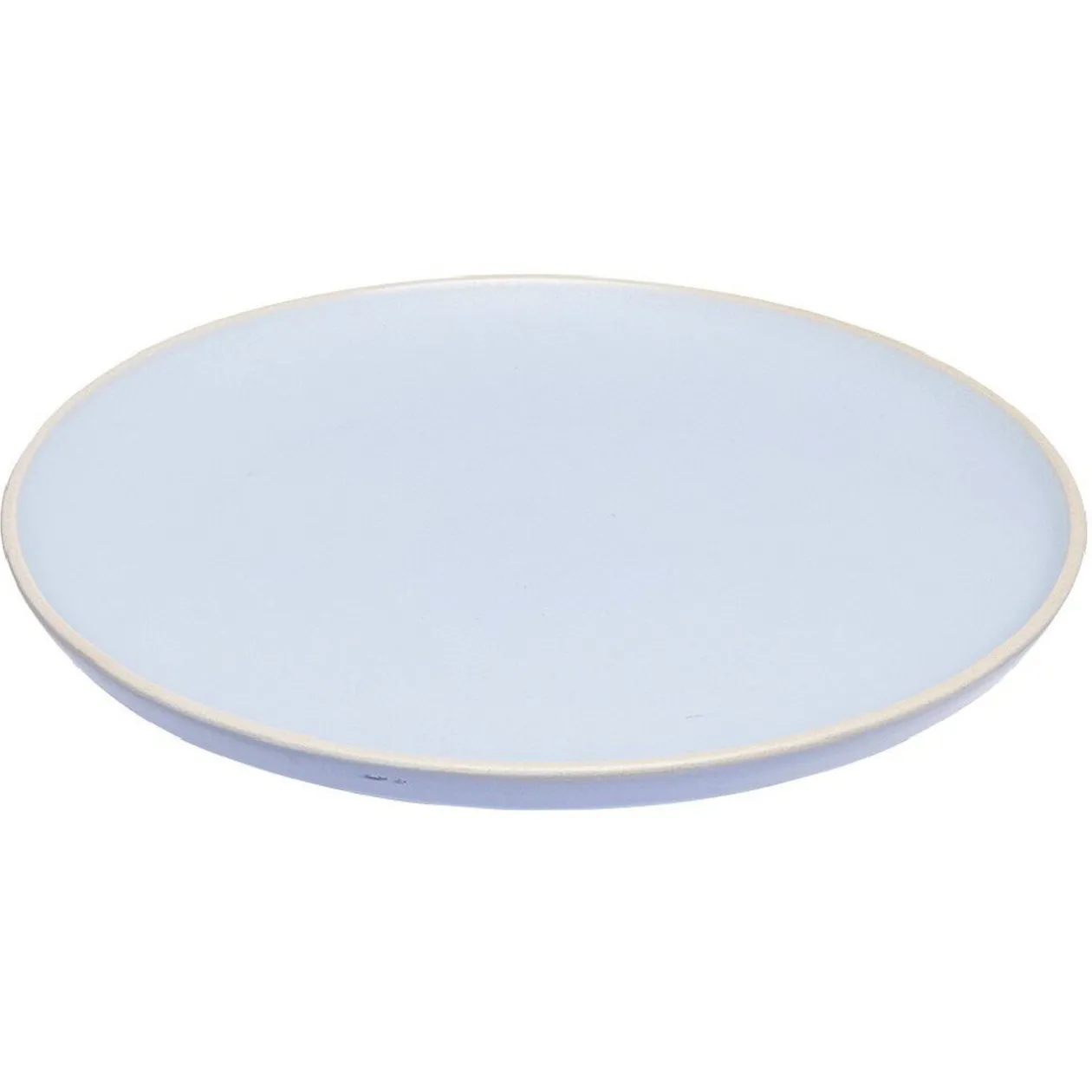 Assiette plate en faïence bleu turquoise avec liseré crème. Idéale pour apporter de la chaleur à votre décoration de table.