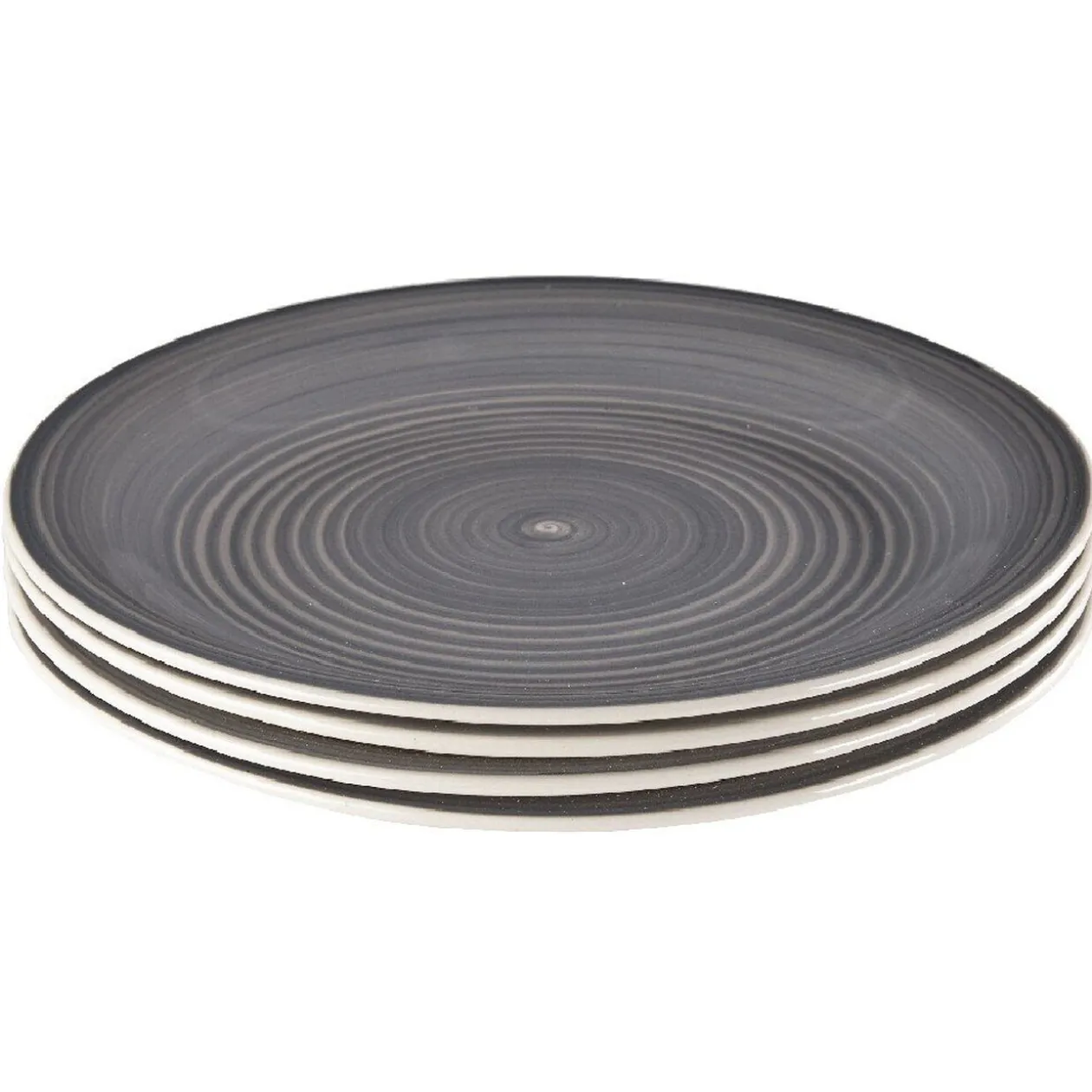 Apportez un peu d’élégance et de simplicité à votre table avec ces 4 assiettes plates de couleur gris effet spirales.