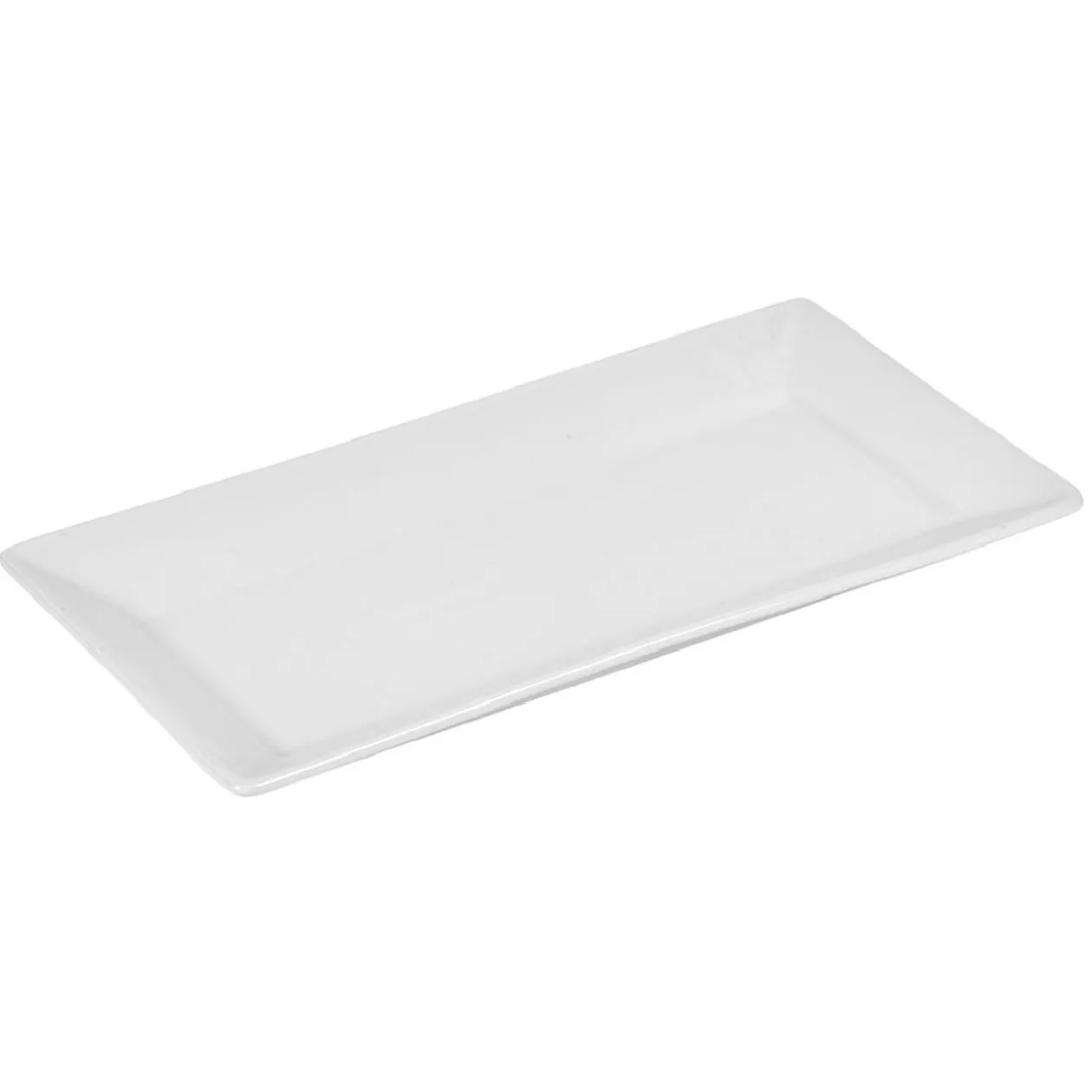 Assiette plate blanche de forme rectangulaire.