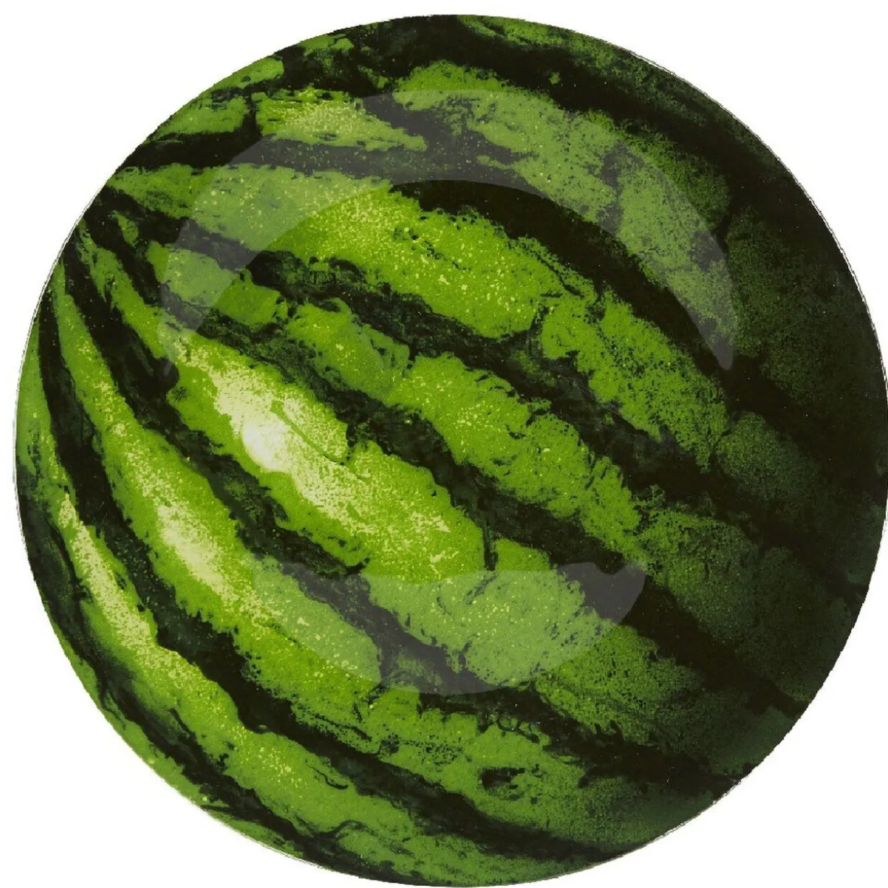 Ajoutez une touche colorée et vitaminée à la présentation de vos salades avec cette assiette en verre imprimée aux couleurs et en forme de pastèque.