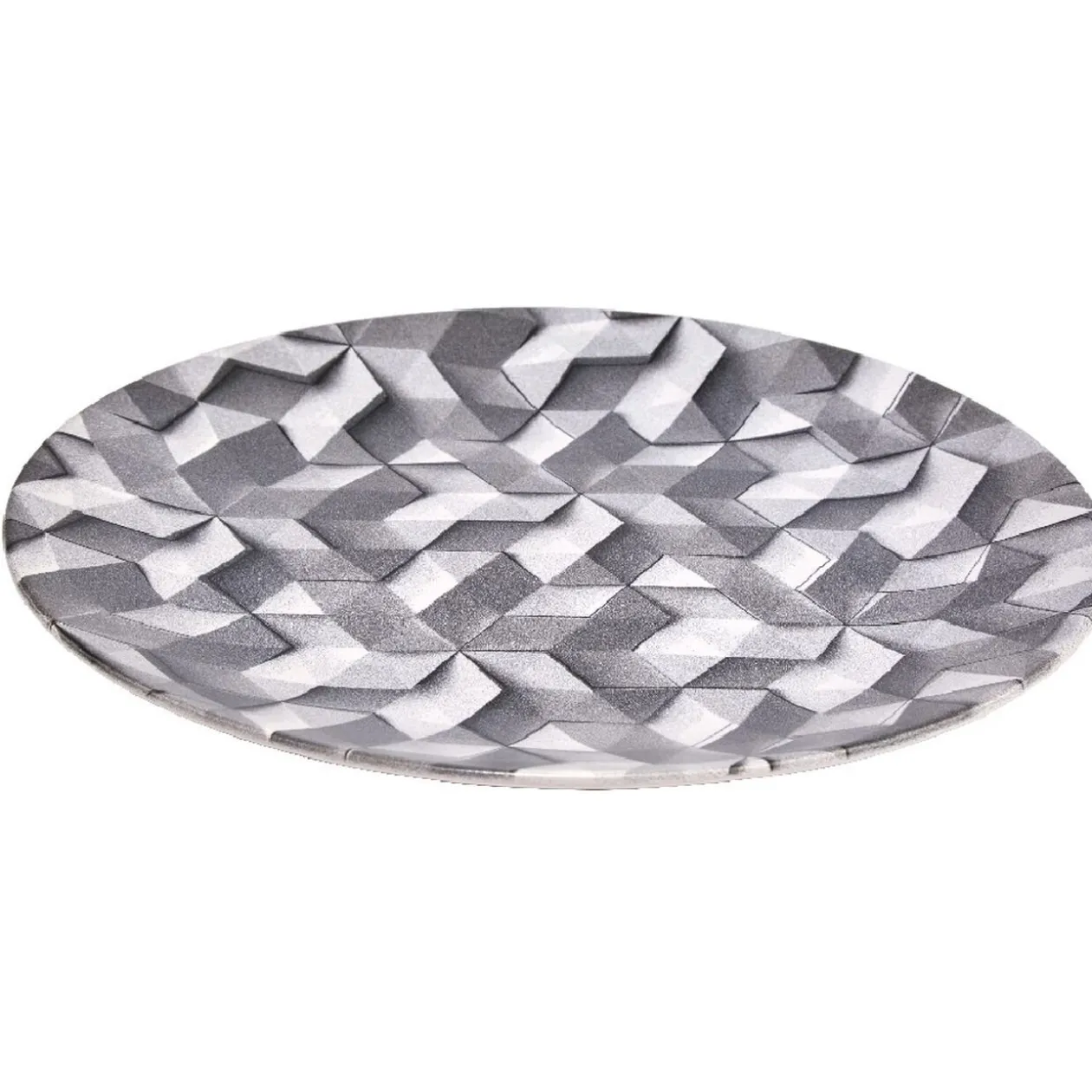 Assiette plate ronde motif origami gris et blanc