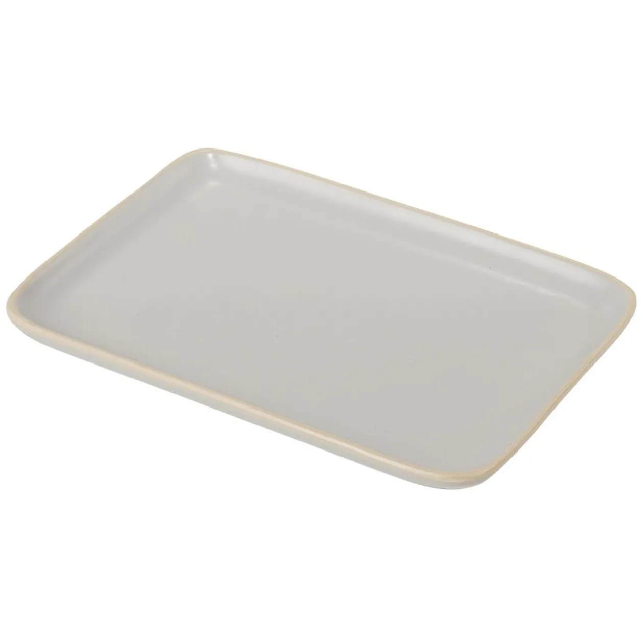 Cette assiette rectangulaire en faïence de couleur grise est idéale pour un service de table moderne.