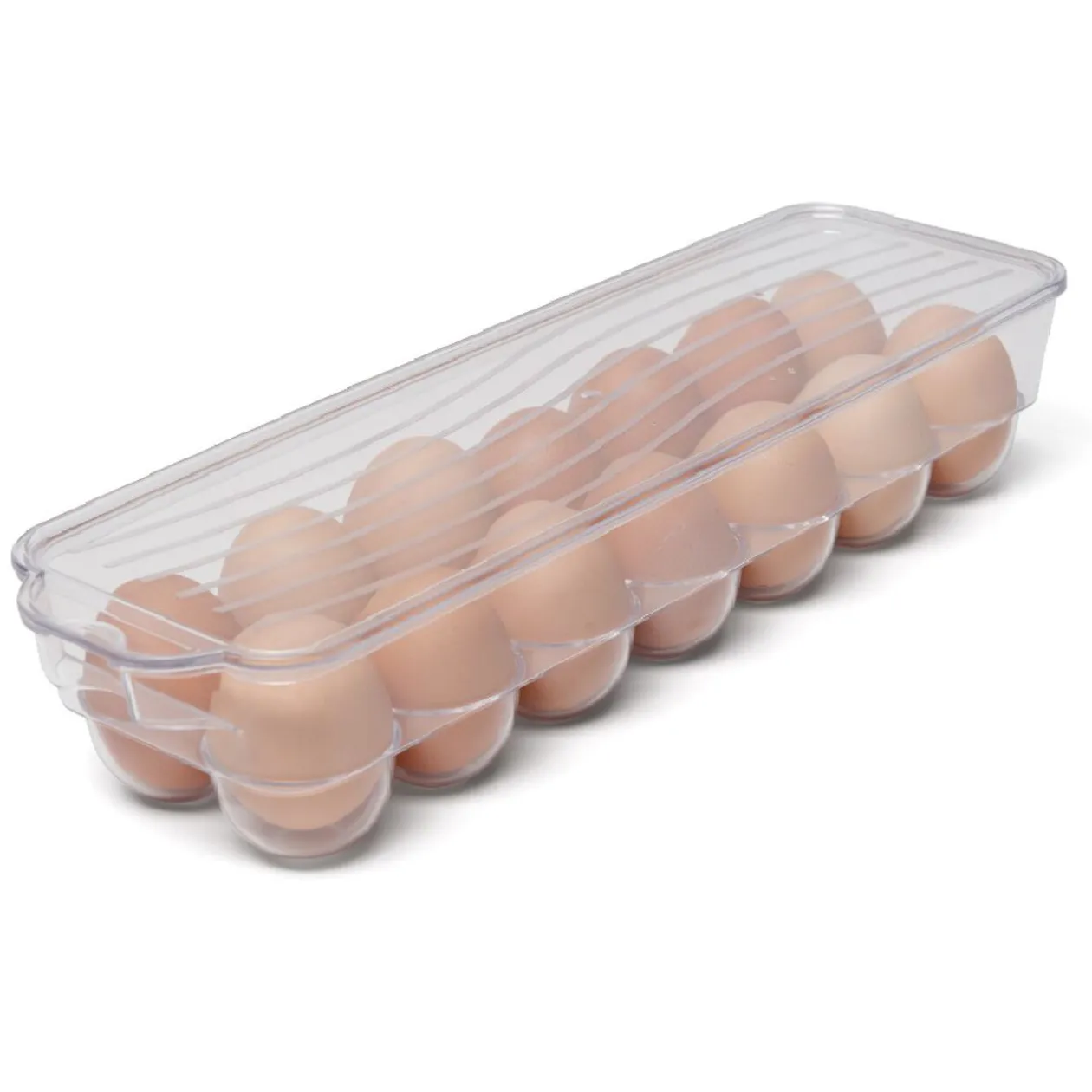 Boîte à oeufs en plastique transparent équipée de 14 emplacements.