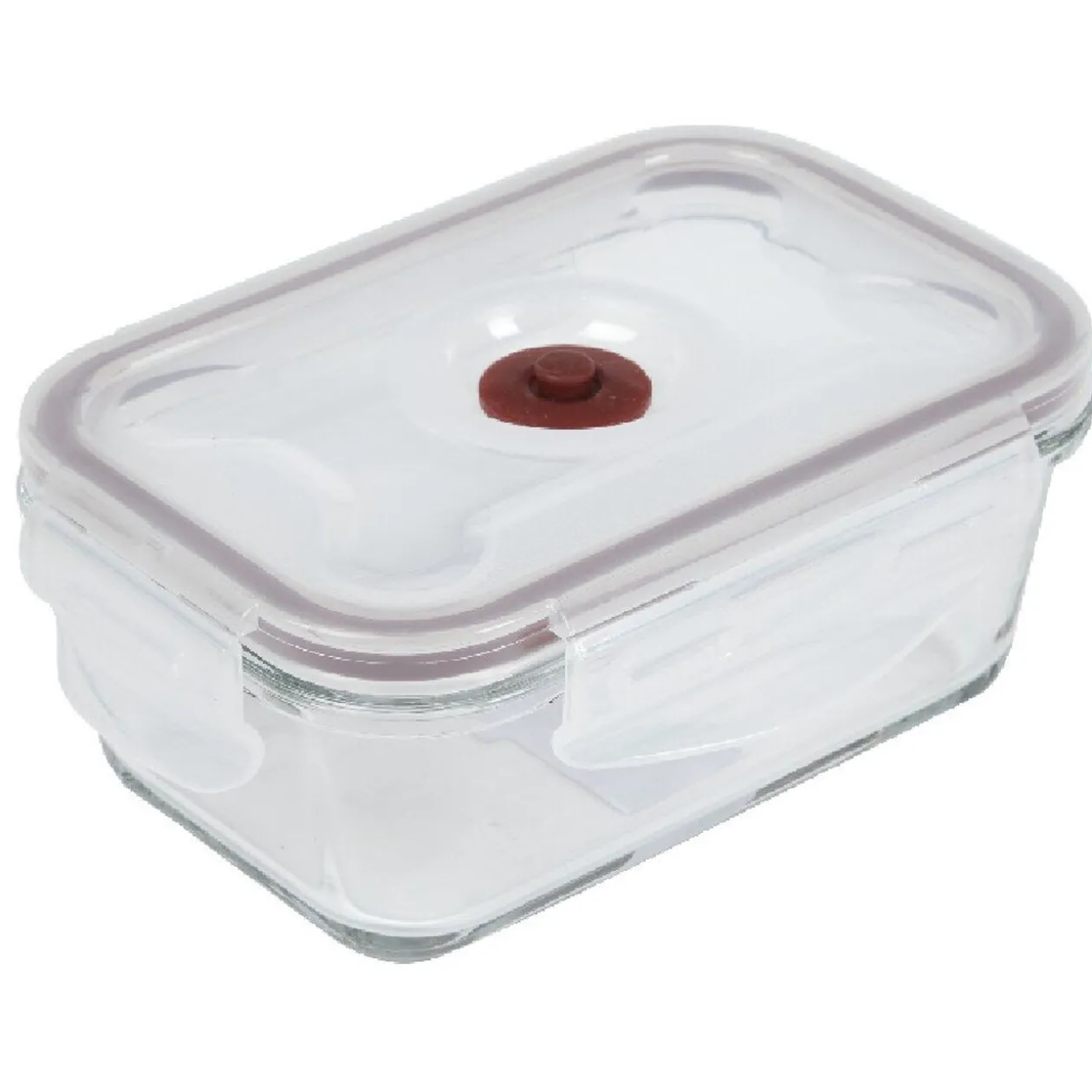 Boîte en verre vide d’air avec couvercle hermétique rouge et blanc, d’une contenance de 500 ml.