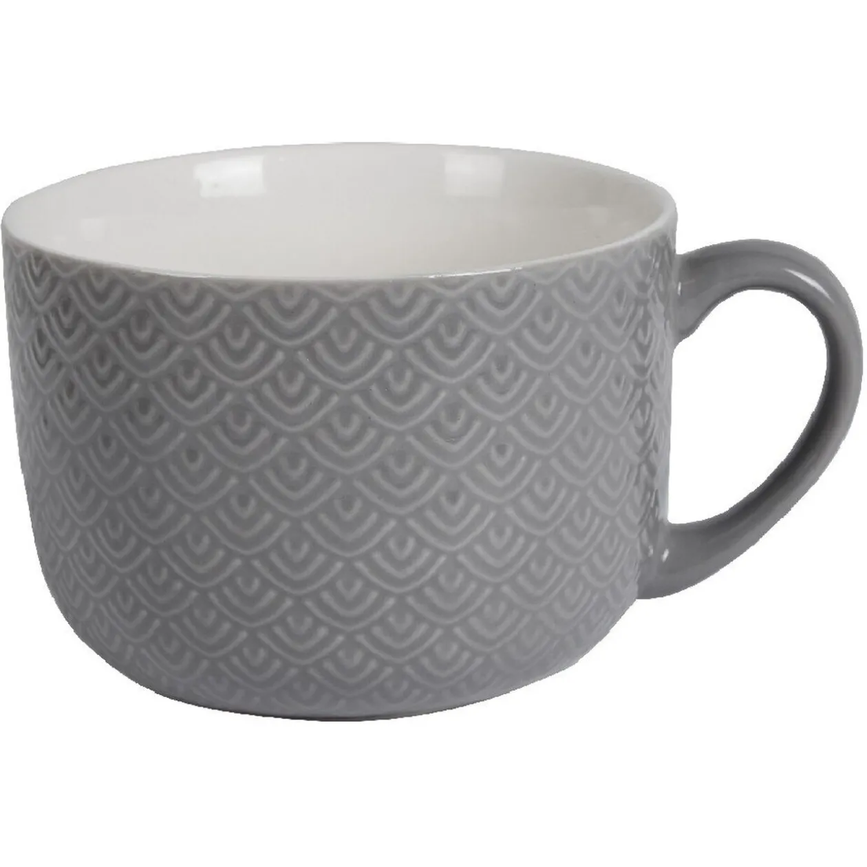 Bol jumbo design à relief gris et blanc avec anse unie grise.