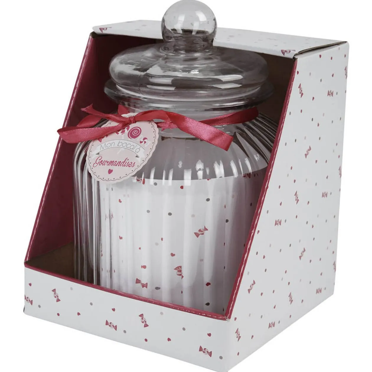 Bonbonnière transparente avec couvercle. Idéale pour stocker vos bonbons, fruits secs et autres condiments.