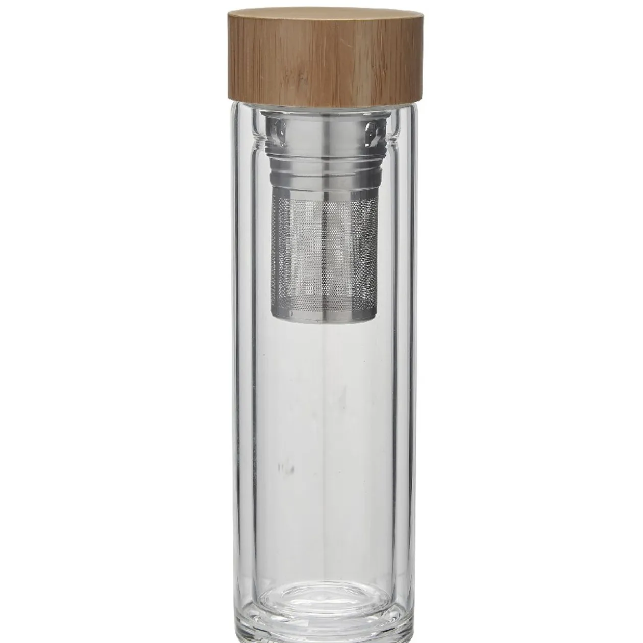 Bouteille en verre avec infuseur en inox et couvercle en bambou pour déguster toutes sortes de boissons infusées.