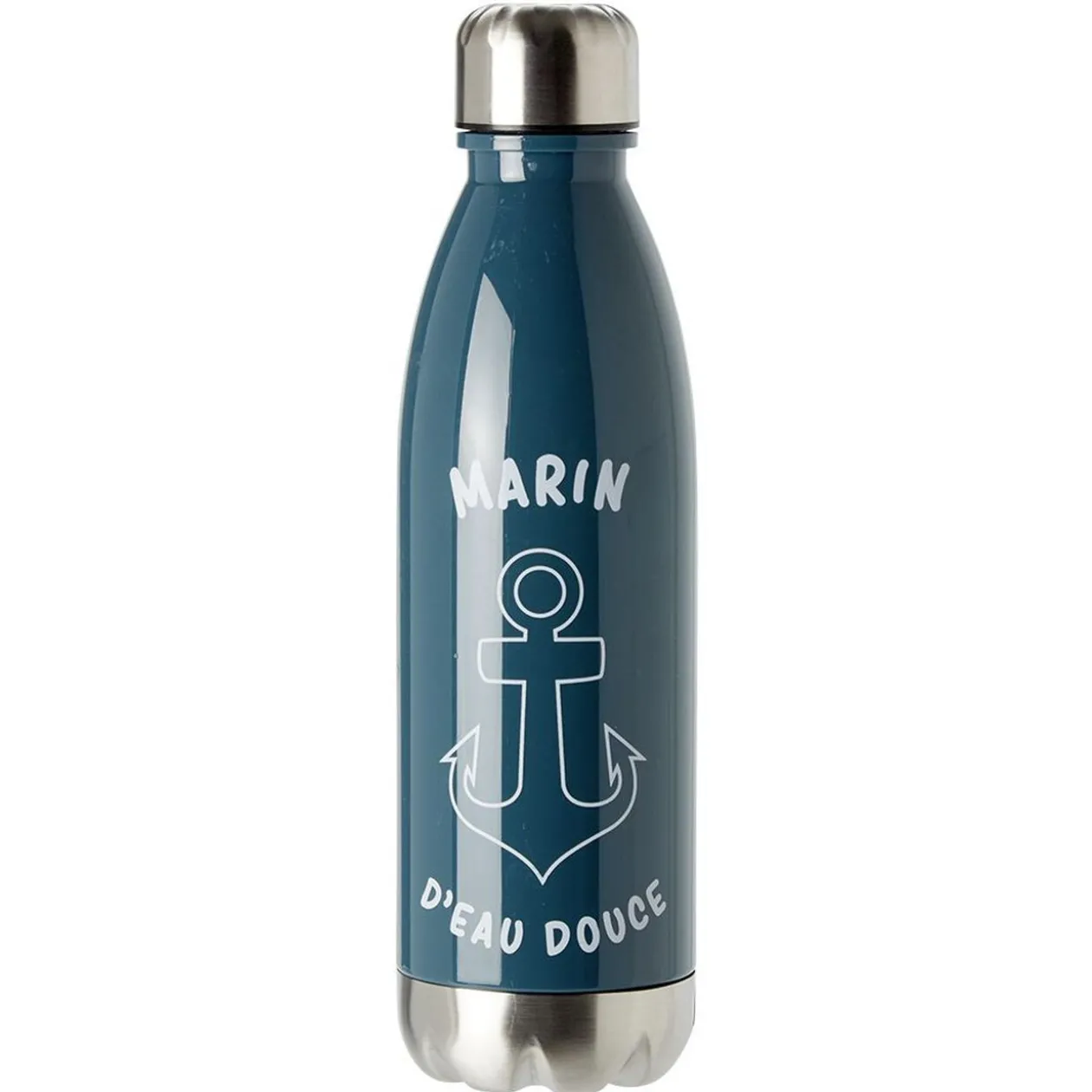 Gardez votre boisson fraîche ou chaude grâce à cette bouteille effet métal avec message fun imprimé.