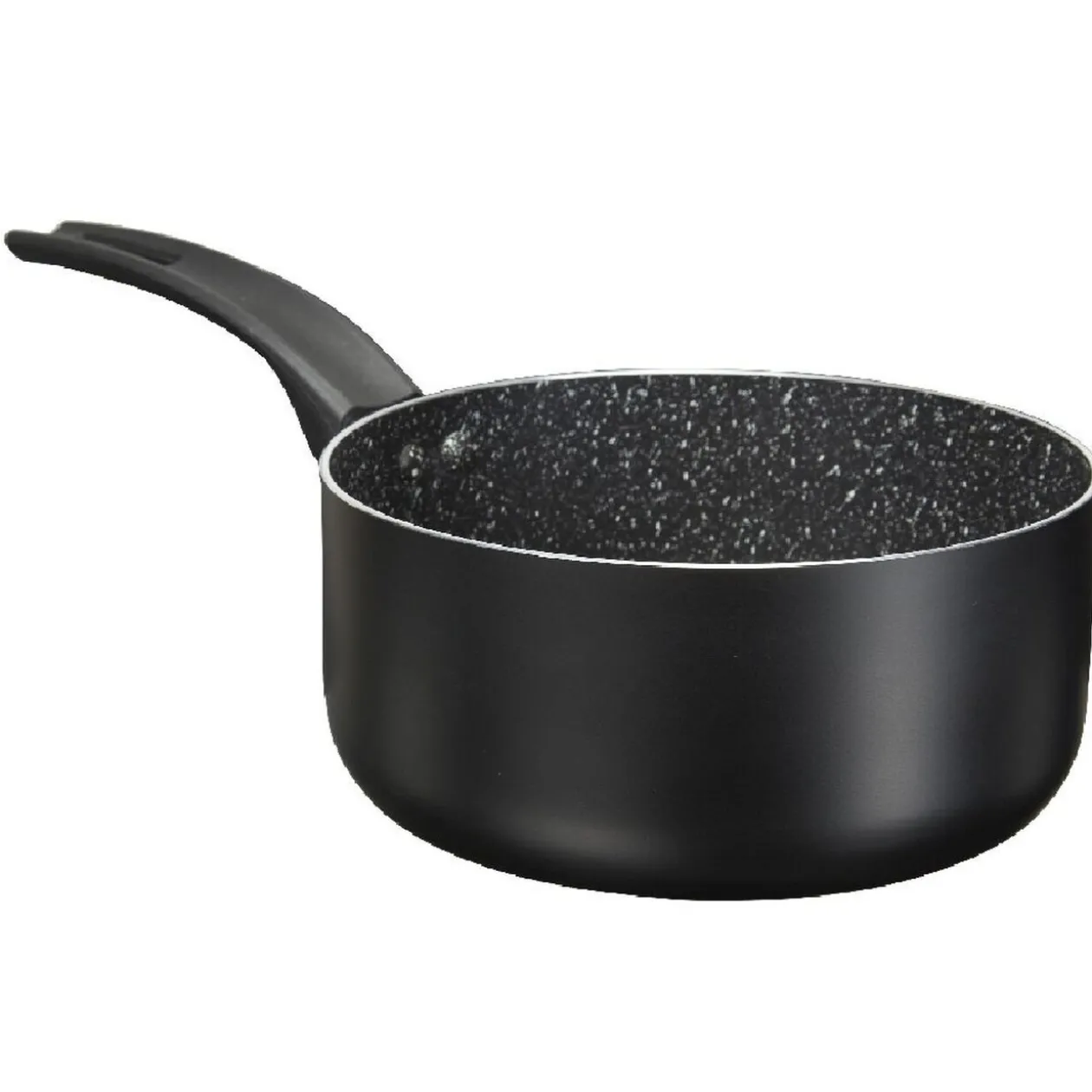 Lot de 2 casseroles noires avec intérieur effet pierre, toutes deux spécialement conçues pour les plaques à induction.