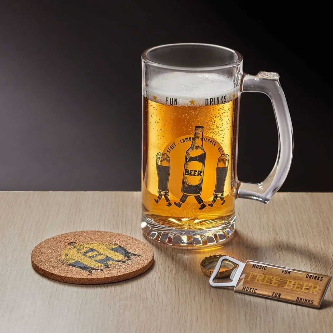 Ce coffret bière composé d’un verre de 46 cl, d’un sous-verre et décapsuleur assortis est idéal pour offrir en guise de cadeau ou pour vous-même afin d’harmoniser vos accessoires.