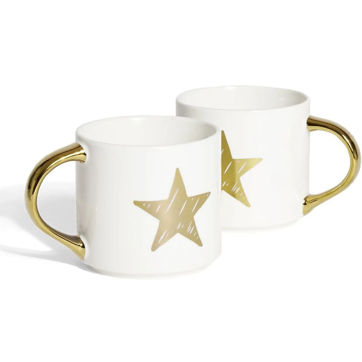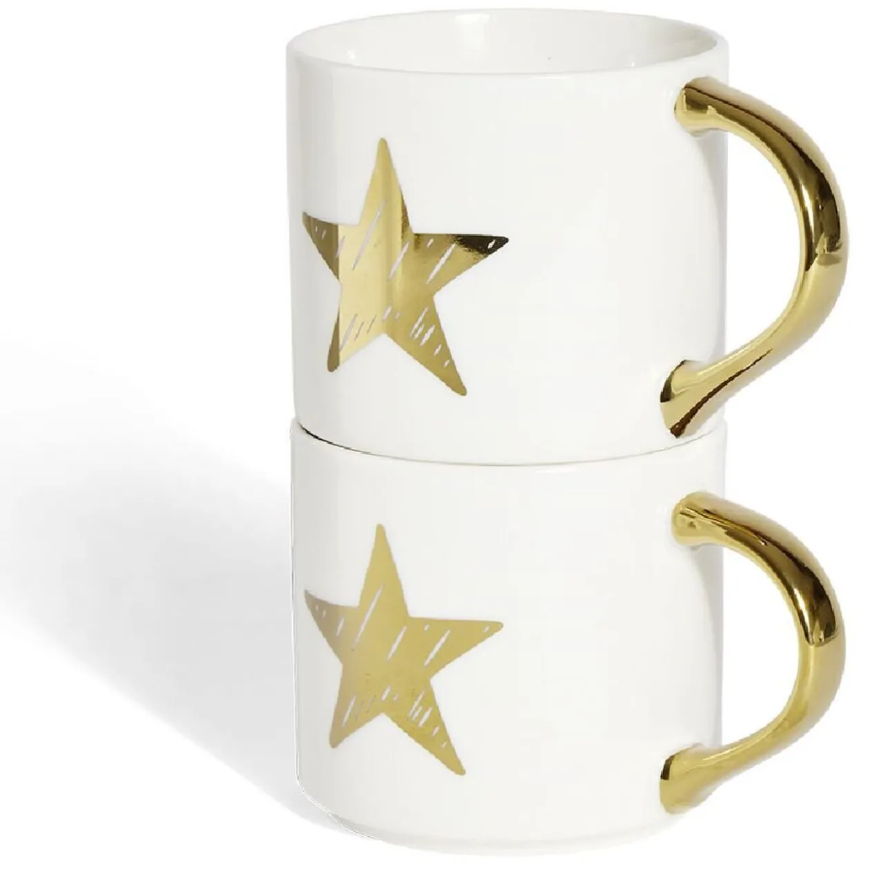 Ornés d’une jolie étoile et d’une anse dorées, ces 2 mugs empilables en céramique sont le cadeau parfait pour partager un moment thé ou café avec la personne de votre choix.