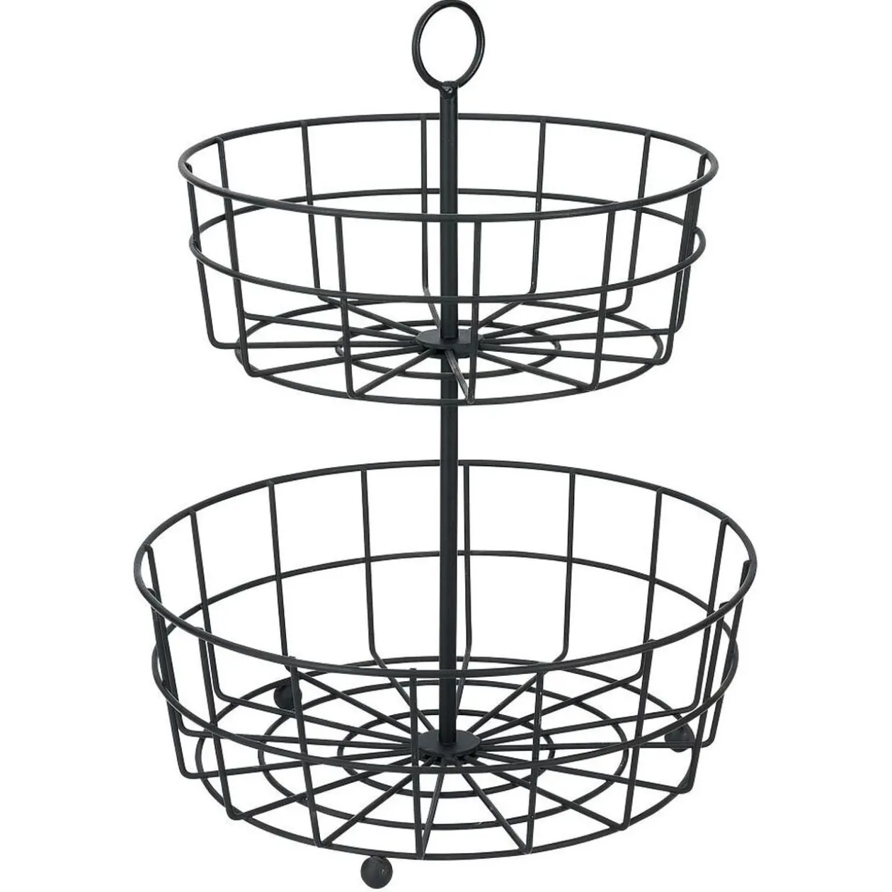 À deux niveaux, cette corbeille à fruits est un élégant accessoire de cuisine en fer noir, offrant à la fois style et fonctionnalité.
