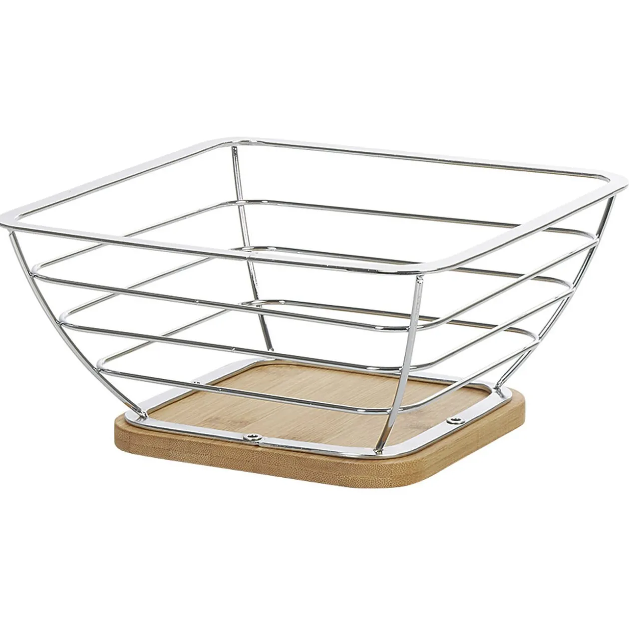 Originale, cette corbeille à fruits avec paroi en métal filaire et socle en bambou naturel fera un élégant centre de table pour votre cusine ou séjour.