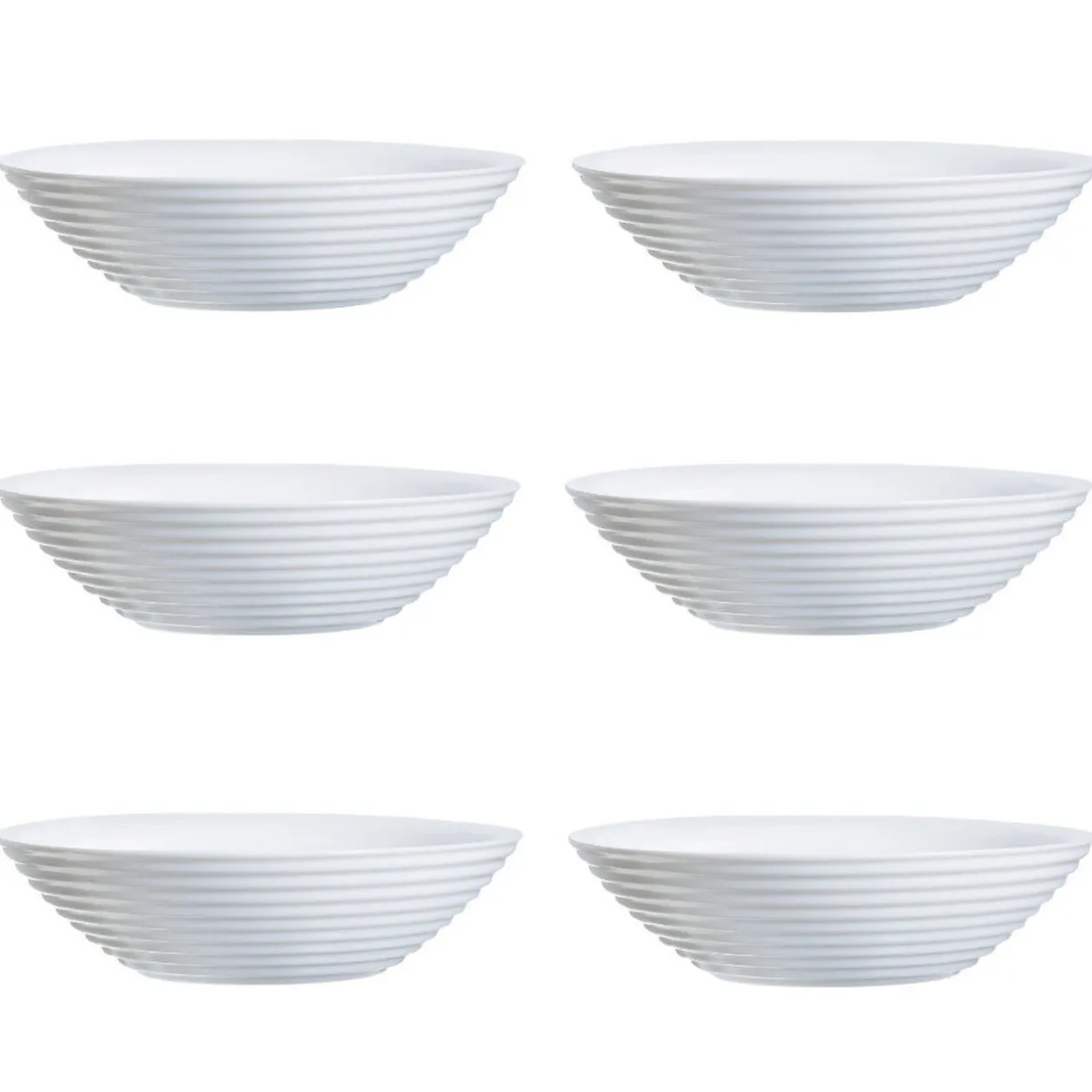 Lot de 6 coupelles blanches Harena avec des lignes en relief sur tout le contour. Classique mais indémodable !