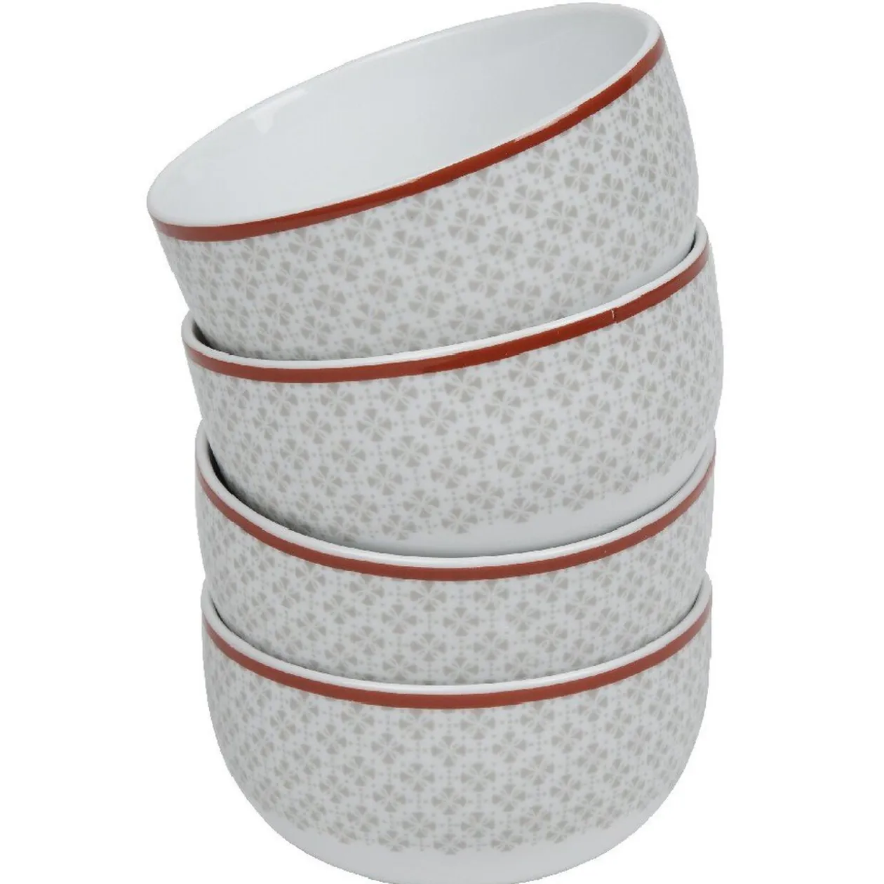 Lot de 4 coupelles design oreige en porcelaine déco petits motifs gris et bord orange, idéal pour donner un esprit authentique à votre table.