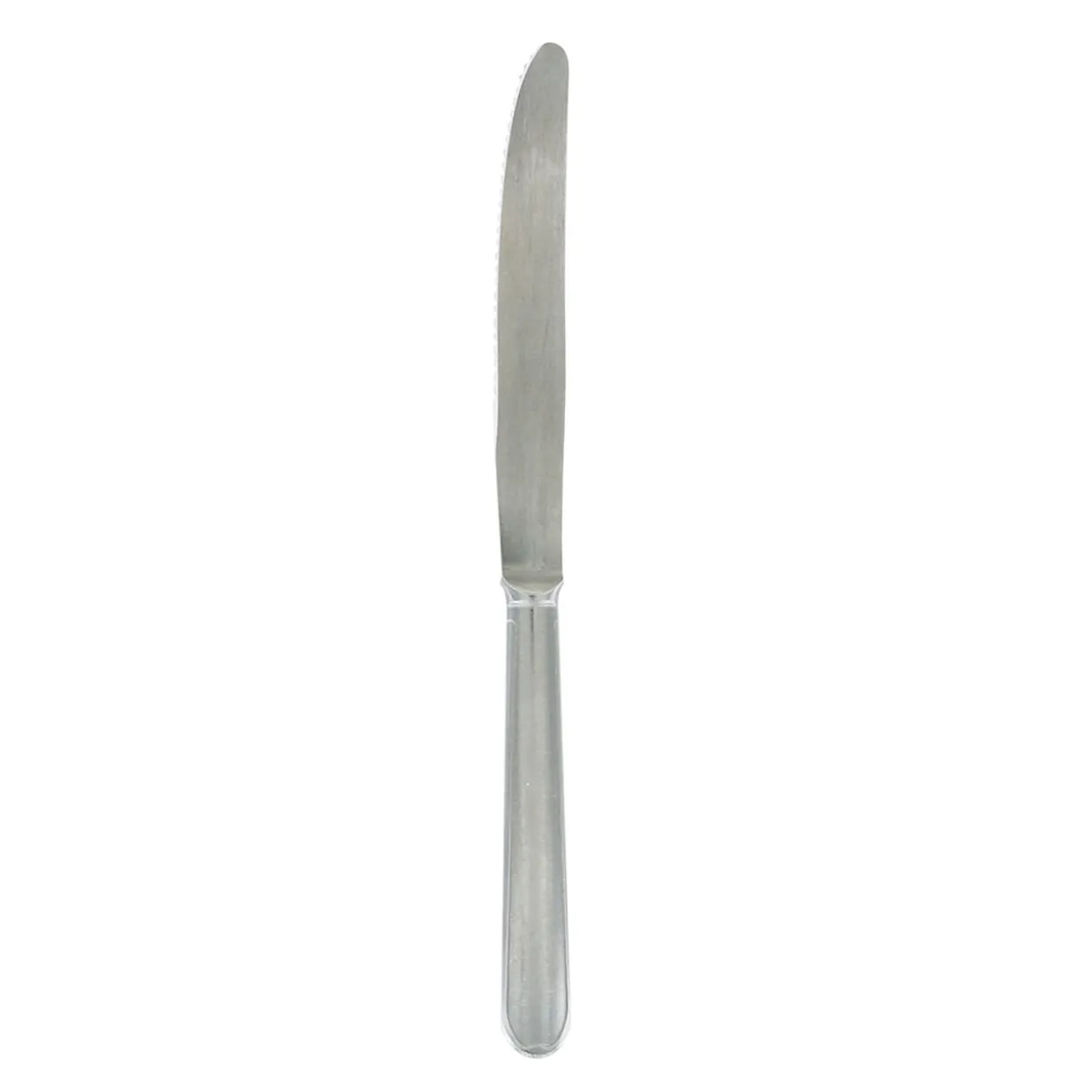 Couteau de table monobloc forgé en inox d’une longueur de 23 cm.
