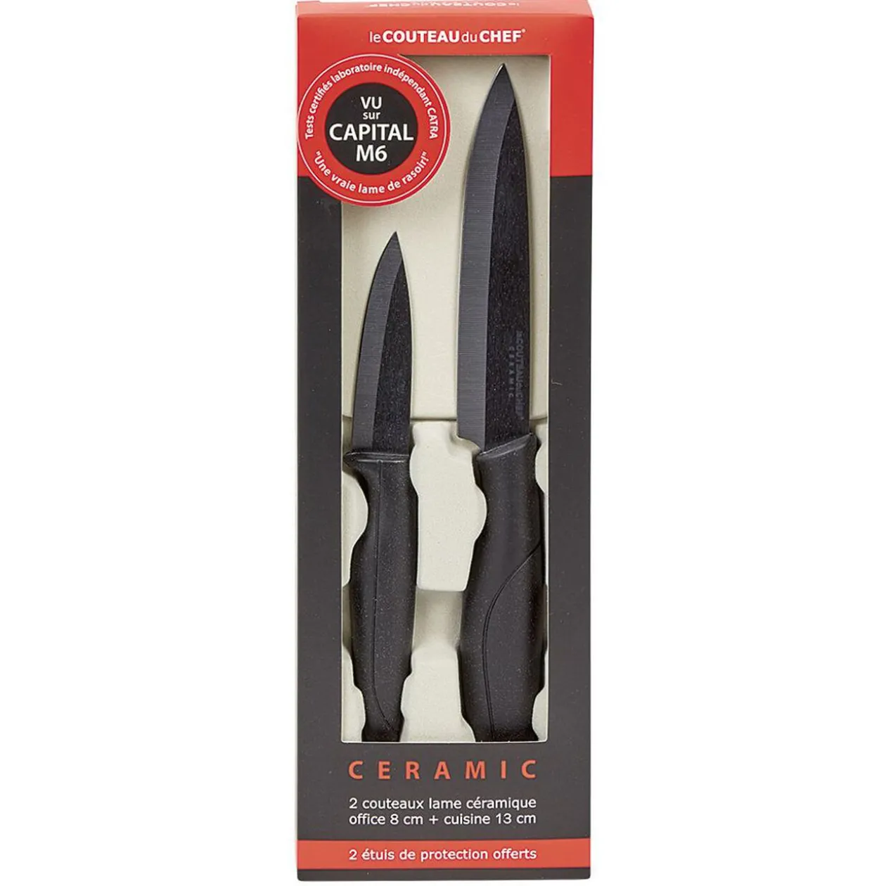 Set de deux couteaux avec lame céramique noire, l’un d’office, l’autre de cuisine.