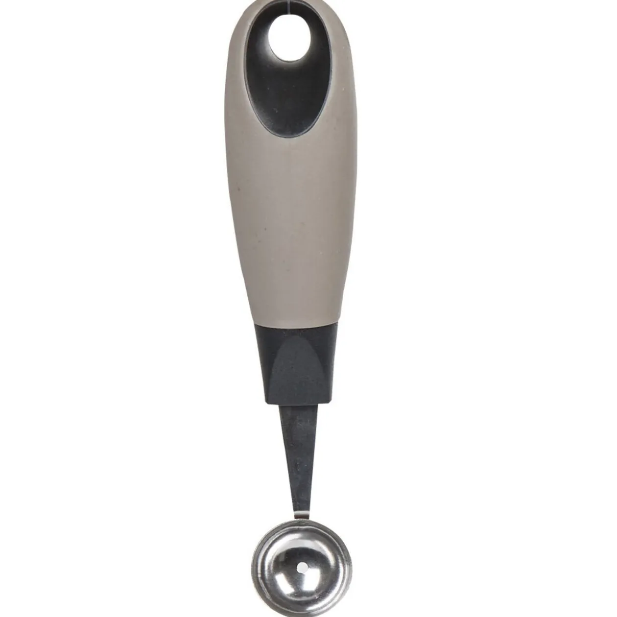 Cuillère à melon noire et grise, métal et plastique.