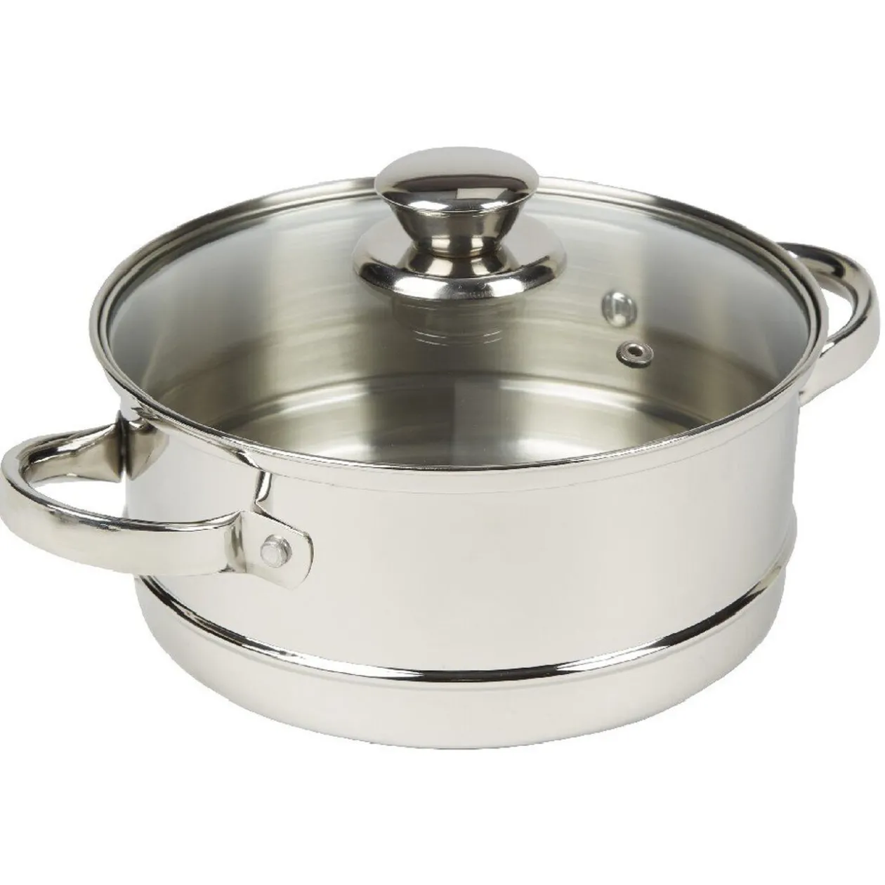 Cuisinez diététique de manière simple et rapide grâce à ce cuit-vapeur en acier inoxydable doté d’un faitout, de deux paniers et d’un couvercle.