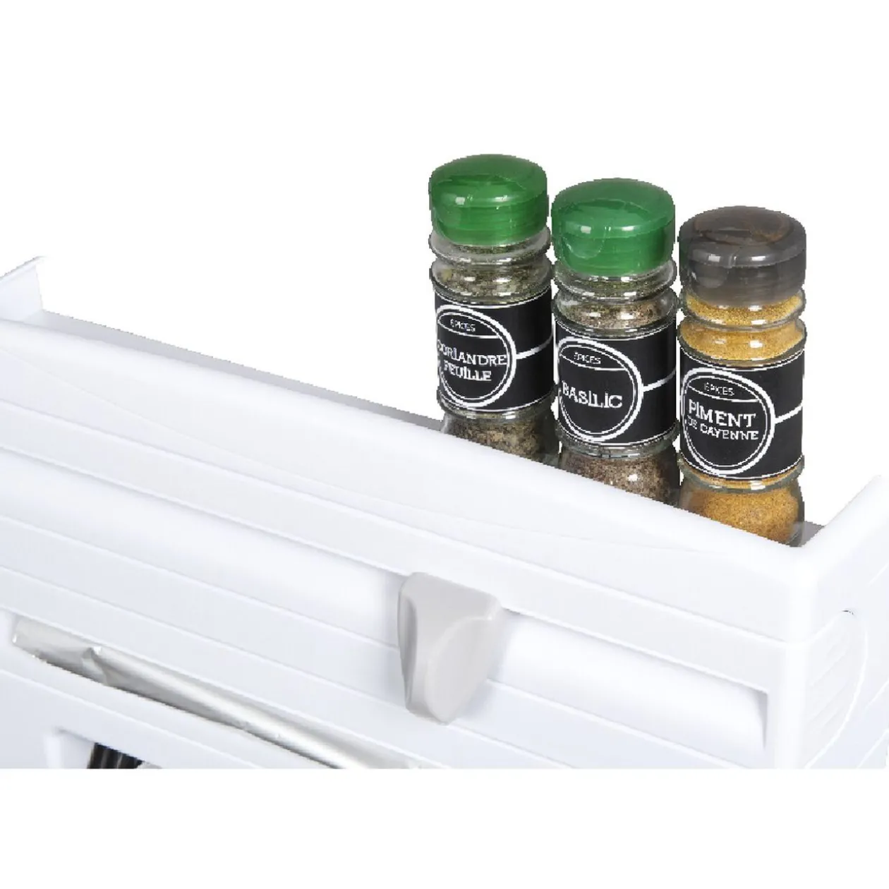 Comprend un porte rouleau pour essuie-tout, film étirable, aluminium et une étagère au dessus.