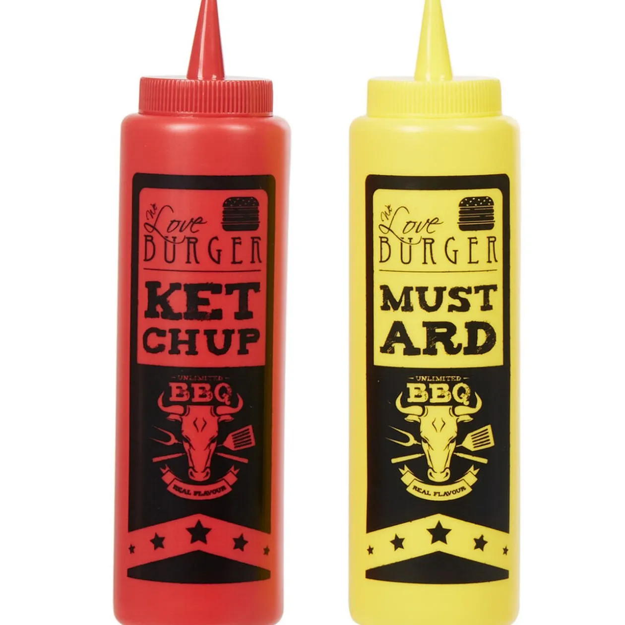 2 distributeurs de sauce rouge et jaune en polyester.