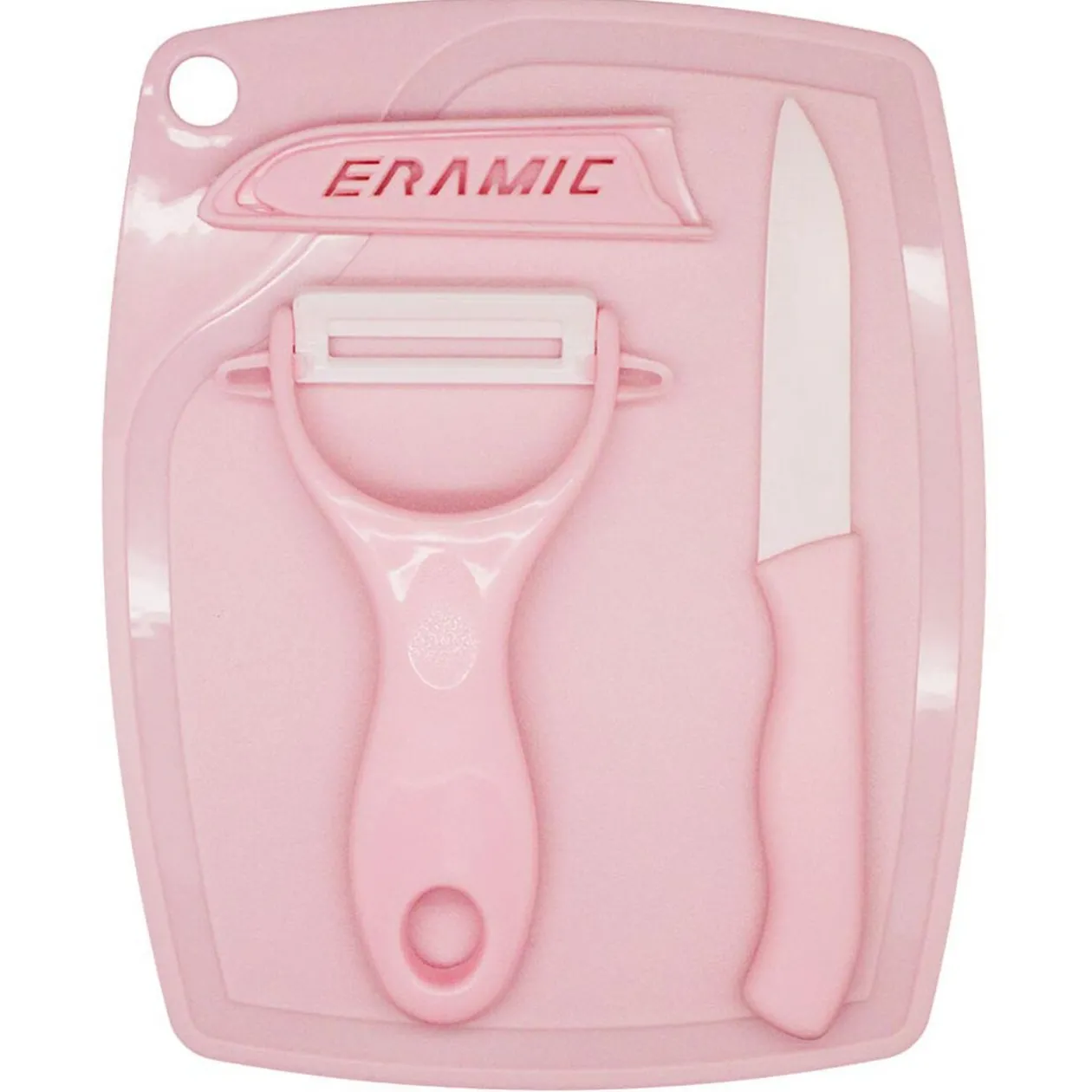 Ce kit de découpe est composé d’une planche, d’un éplucheur et d’un couteau incluant son étui de protection avec inscription ajourée « Ceramic ».