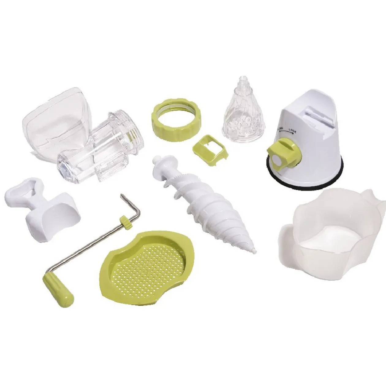 Extracteur de jus manuel pour réaliser facilement des jus de fruits, légumes et herbes.