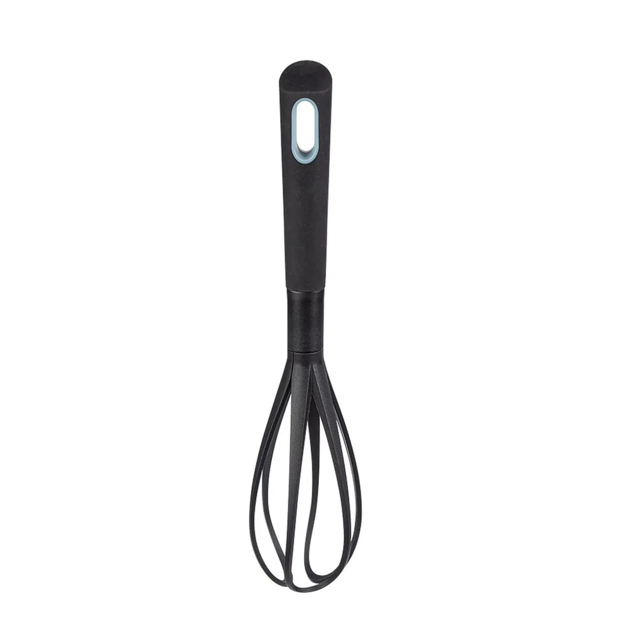 Fouet de cuisine noir et bleu, idéal pour la préparation de vos crèmes et mélanges semi-liquide en pâtisserie.