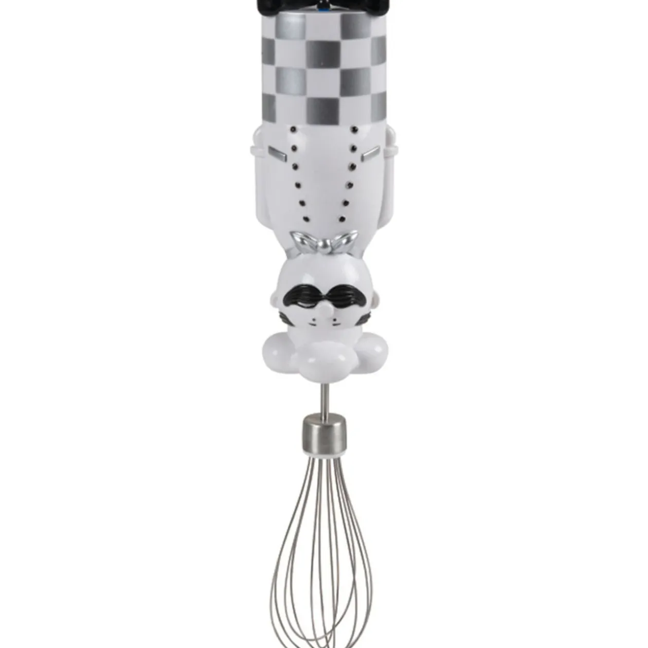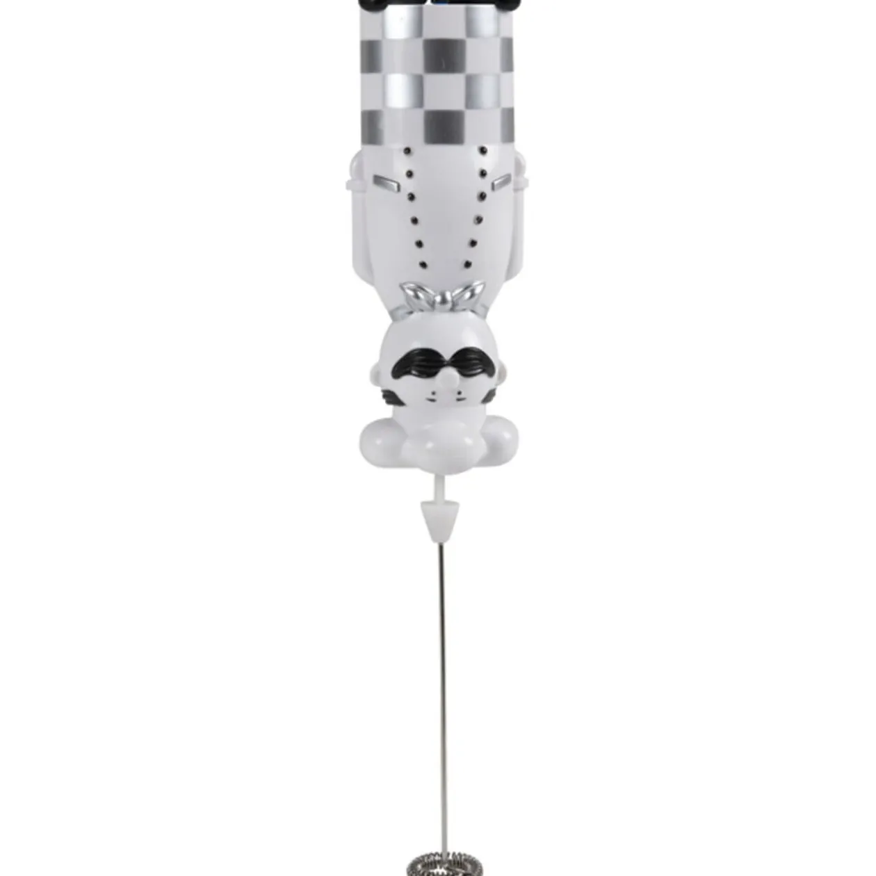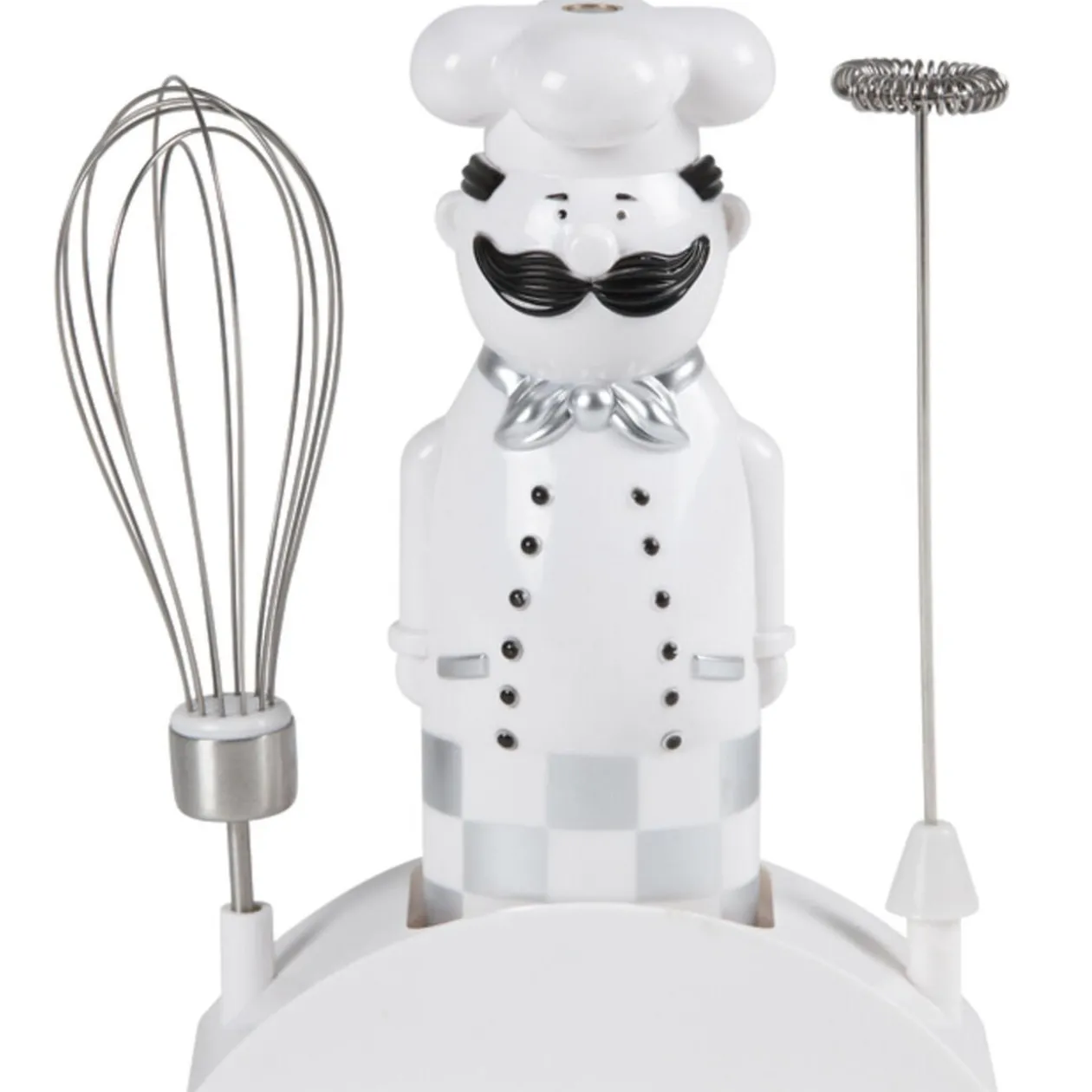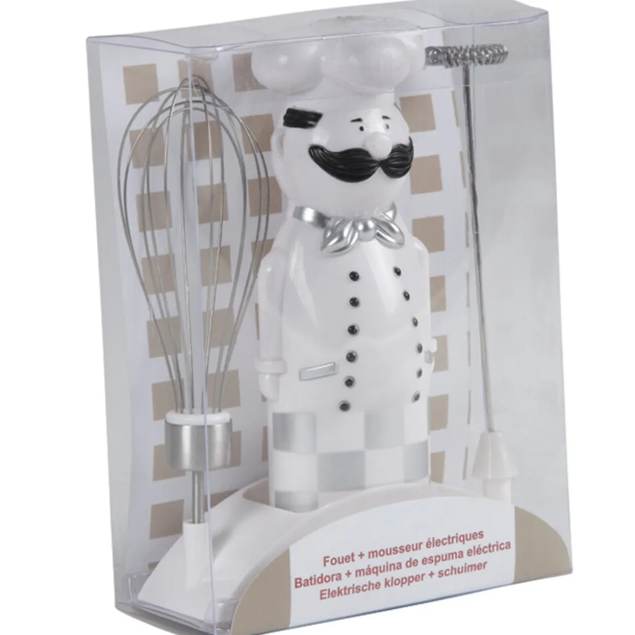 Fouet / mousseur électrique 2 en 1, avec 1 support dim. 14×10 cm, plastique. Fonctionne avec 2 piles LR06 non incluses..