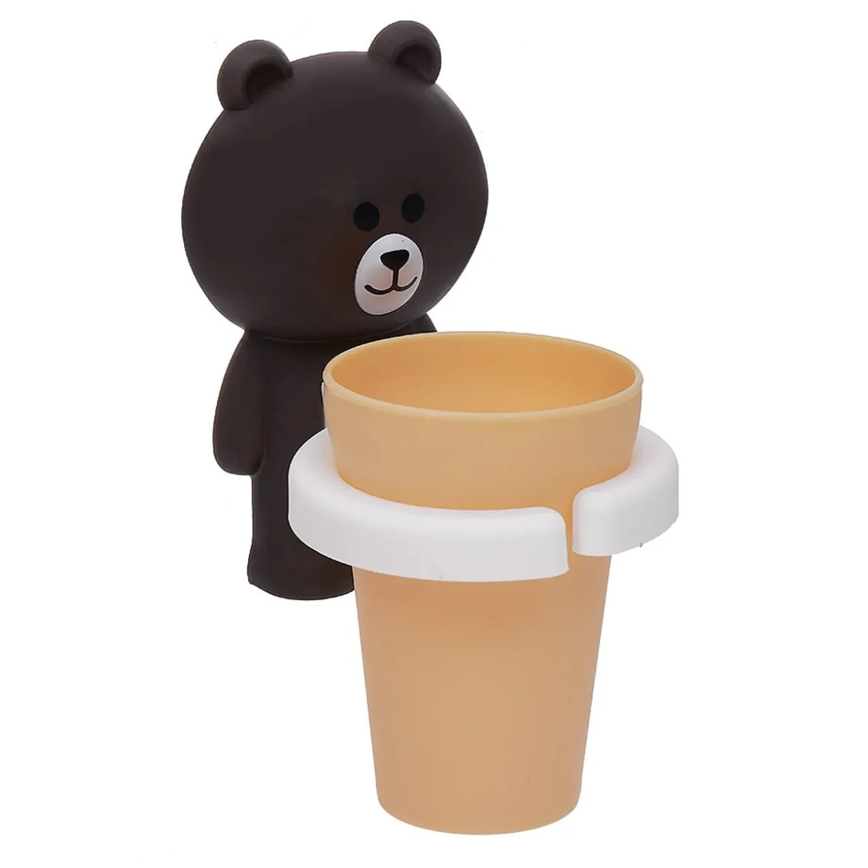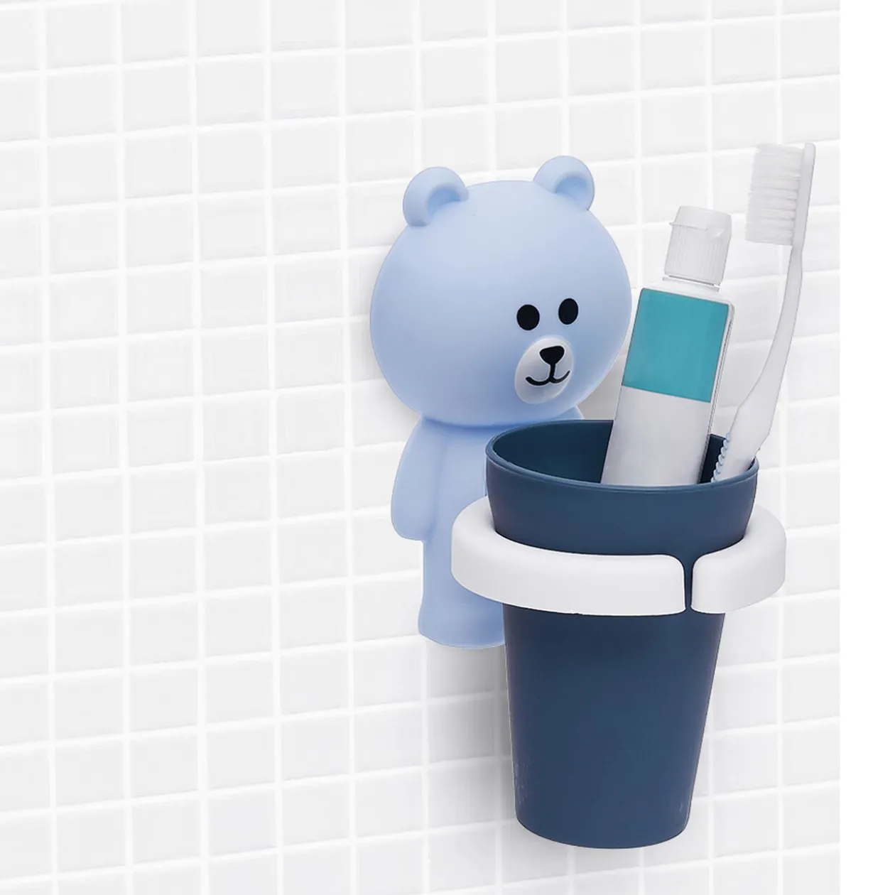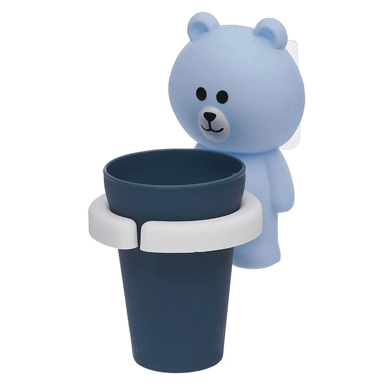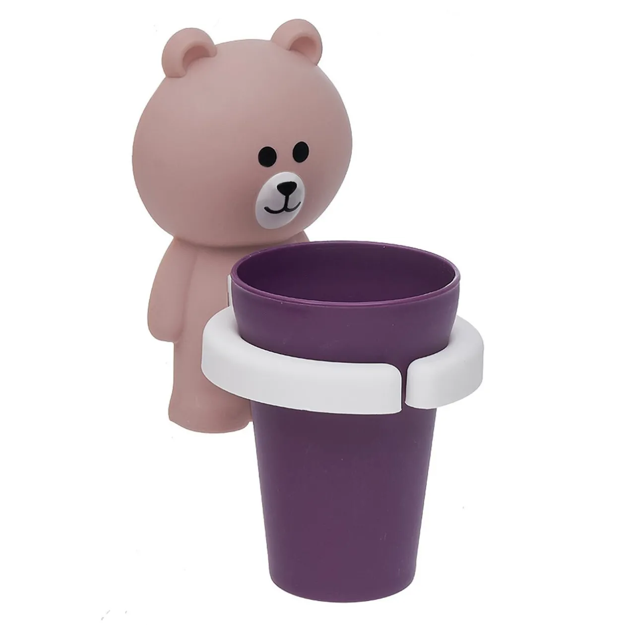 Gobelet pour brosse à dents avec son support déco en forme d’ours.