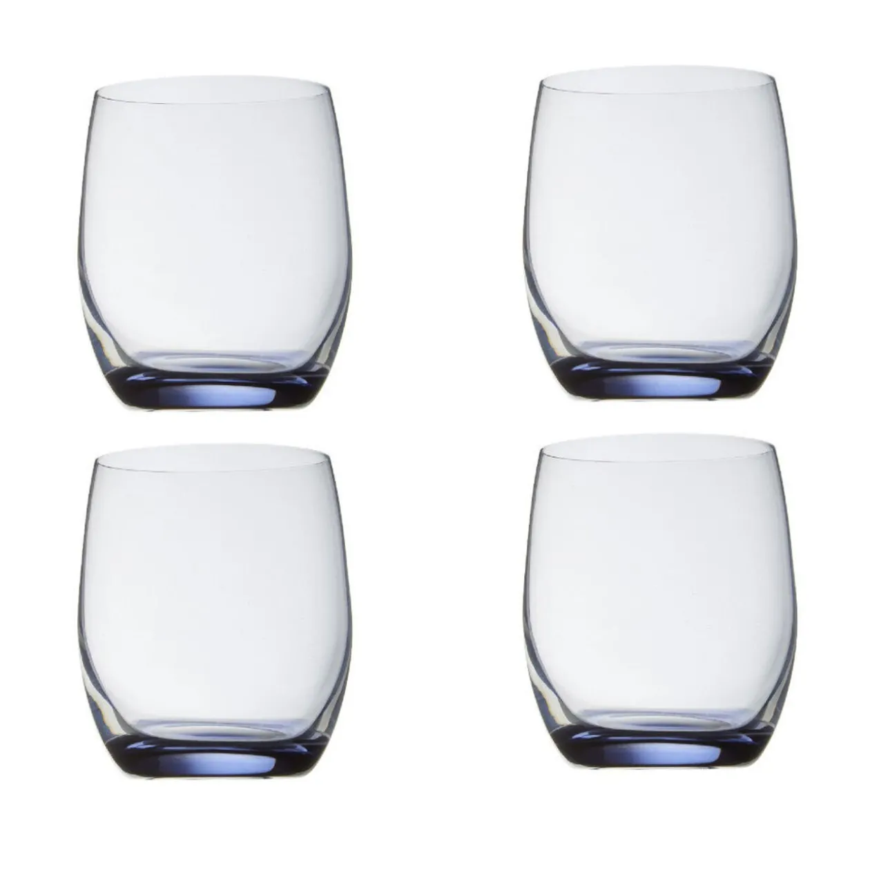 Lot de 4 gobelets en verre transparent d’une contenance de 30 cl.