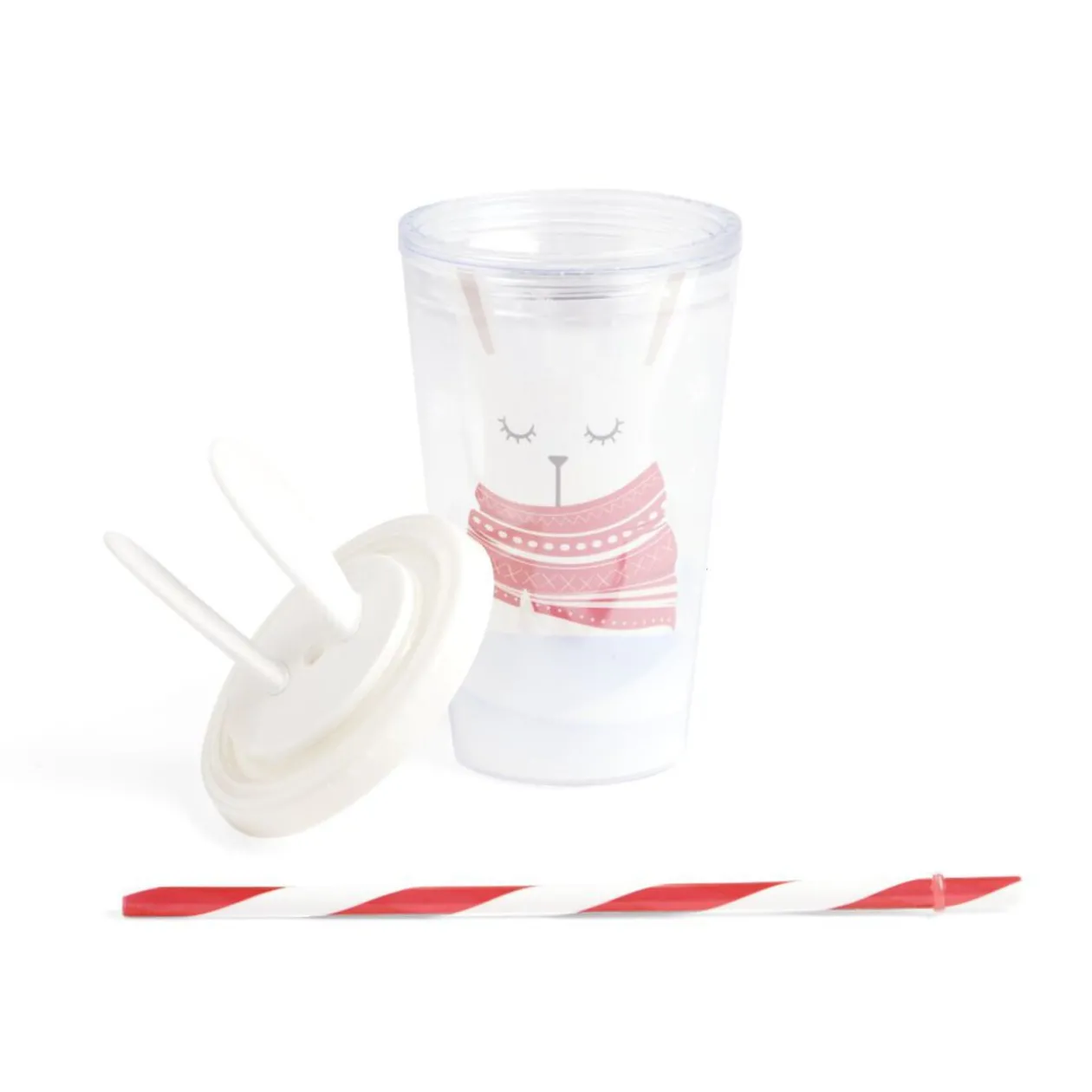 Pour être dans le thème de Noël jusque dans les moindres détails, ce gobelet rouge et blanc représentant un joli animal tout emmitouflé est idéal.
