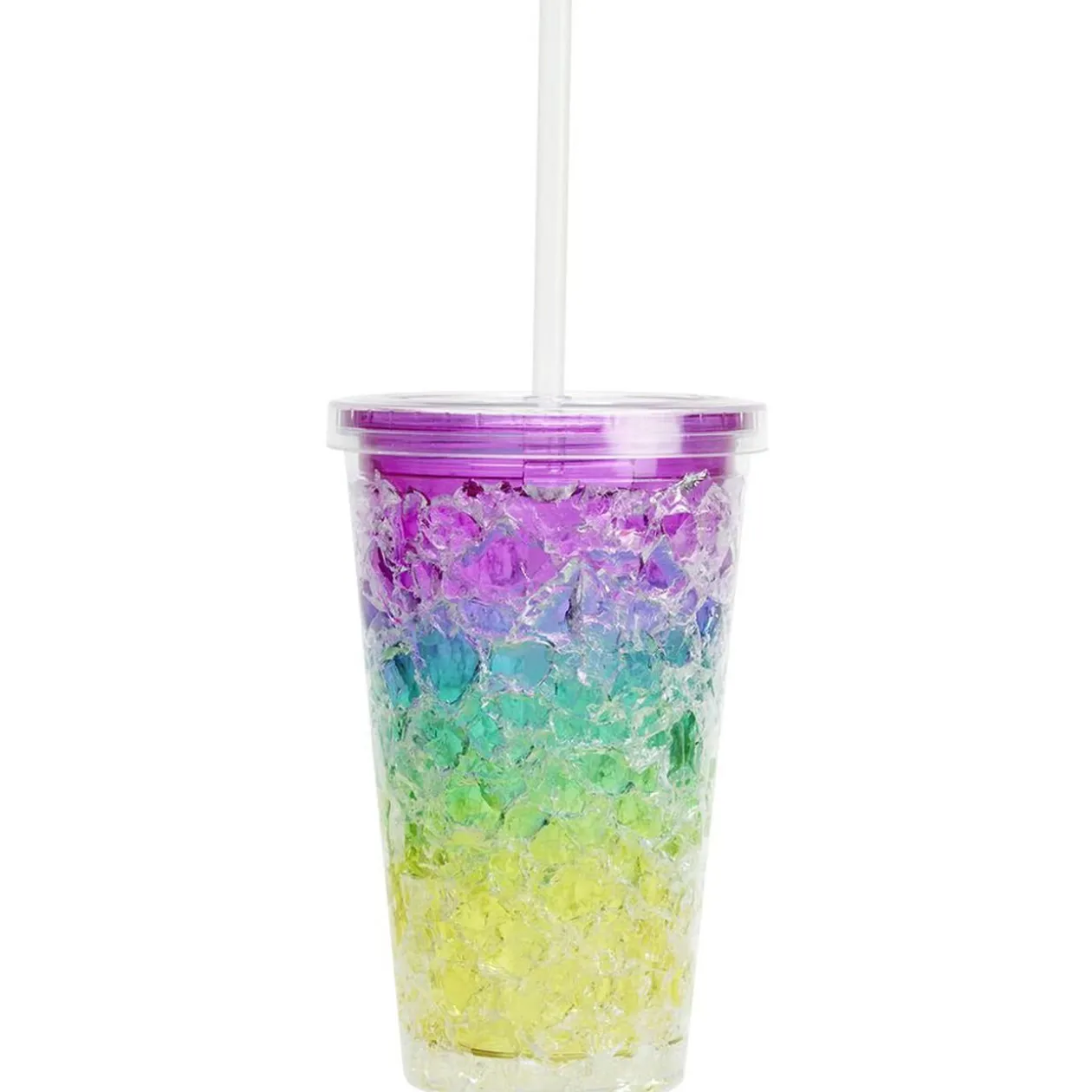 Gobelet rafraîchissant au design arc en ciel, idéal pour déguster vos boissons glaçées de l’été.