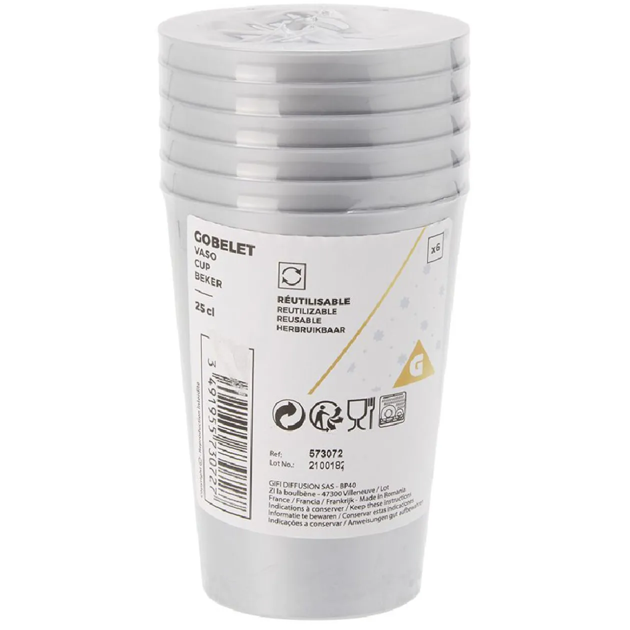 Lot de 6 gobelets argentés en plastique réutilisable, idéal pour servir vos boissons en période de fête !