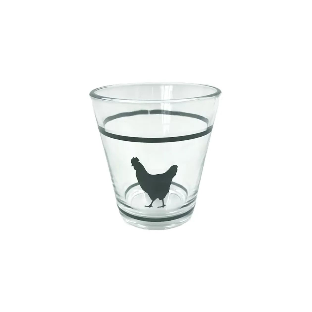 Optez pour ces 3 gobelets en verre transparent avec motif de poule grise et inscription « Retour de marché ».