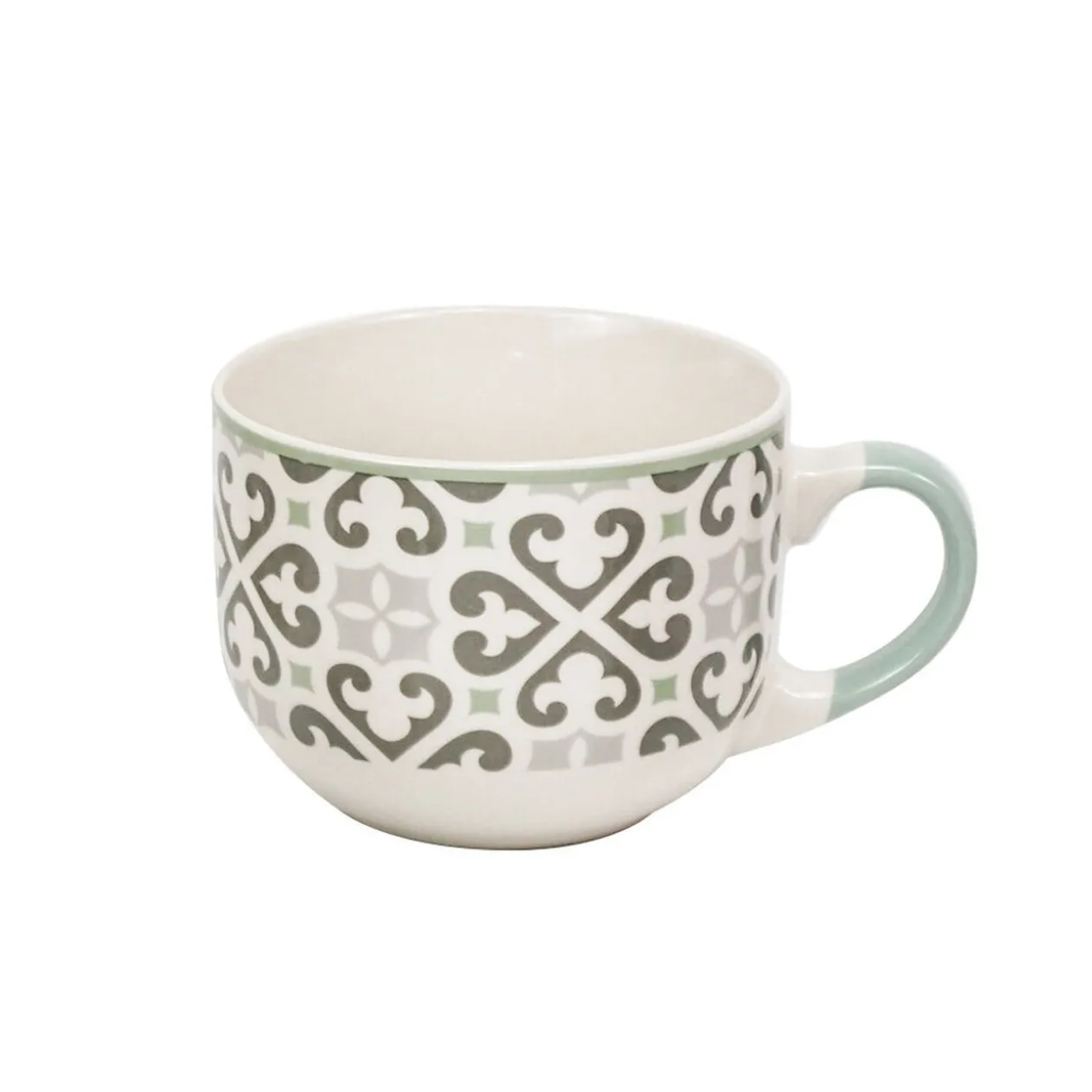 Optez pour cette maxi tasse en porcelaine blanche décorée de motif carreaux de ciment gris et vert d’eau. Idéale pour dresser une belle table de petit-déjeuner au style tendance et authentique!