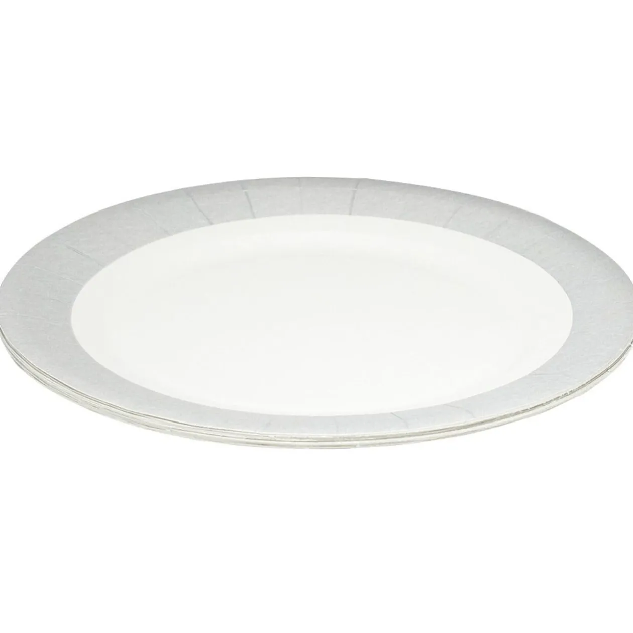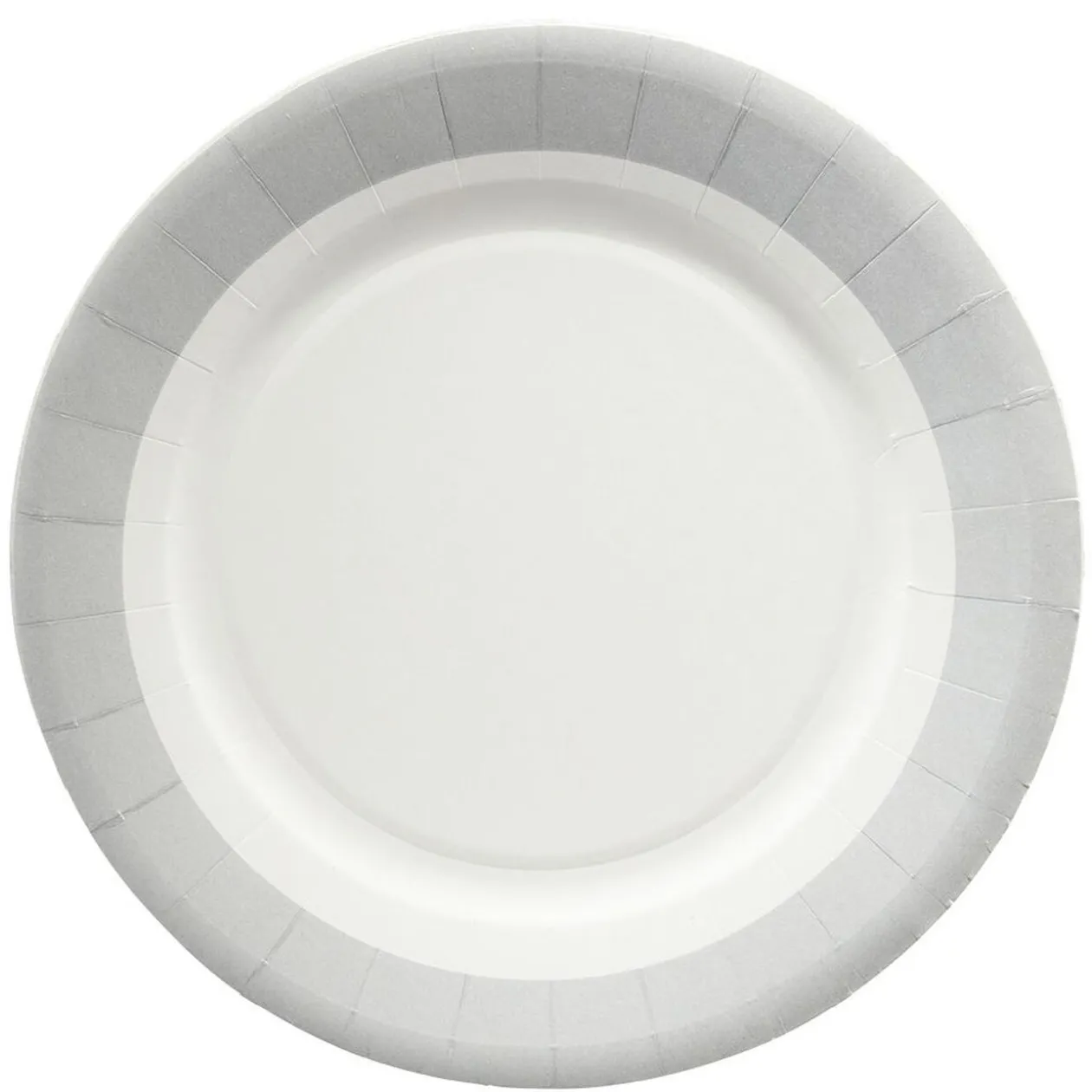 Lot de 10 assiettes rondes en carton blanc avec bord gris pour servir vos repas de fête !