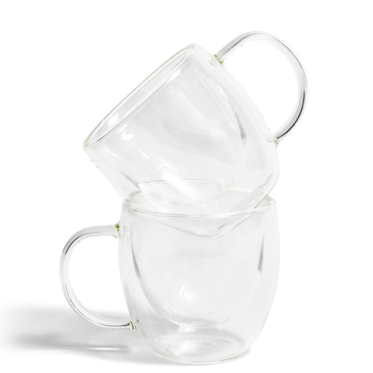 Dégustez vos boissons chaudes préférées sans brûler les mains avec ces tasses en verre transparent, idéales pour le café ou le thé.