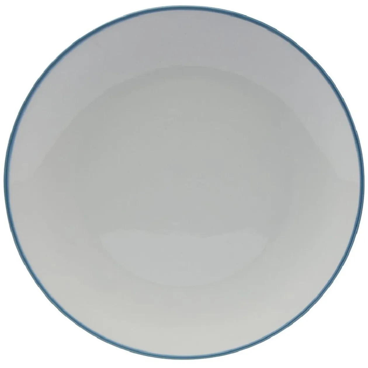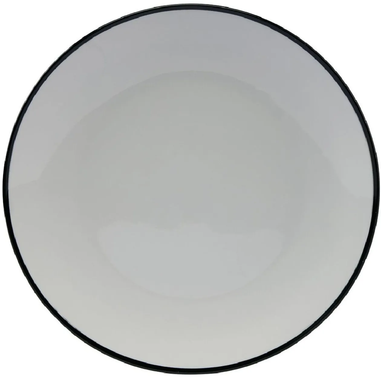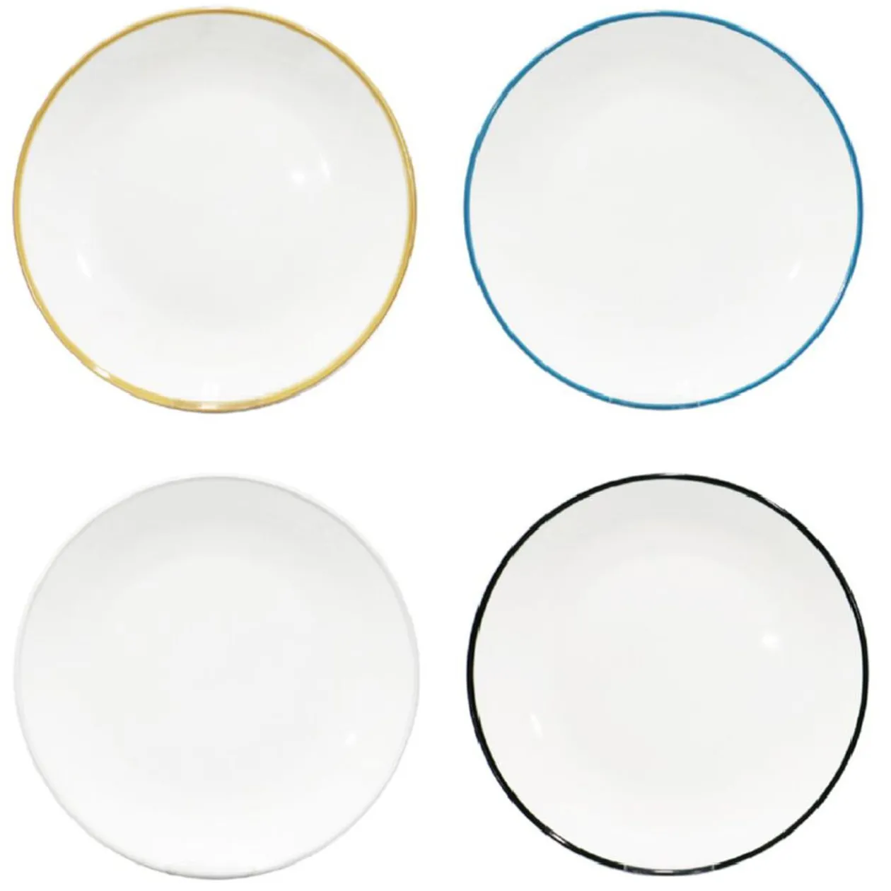 Ce service composé de 4 assiettes blanches avec liseré coloré sur le bord, noir, bleu, jaune et gris, sera du plus bel effet en toutes occasions.