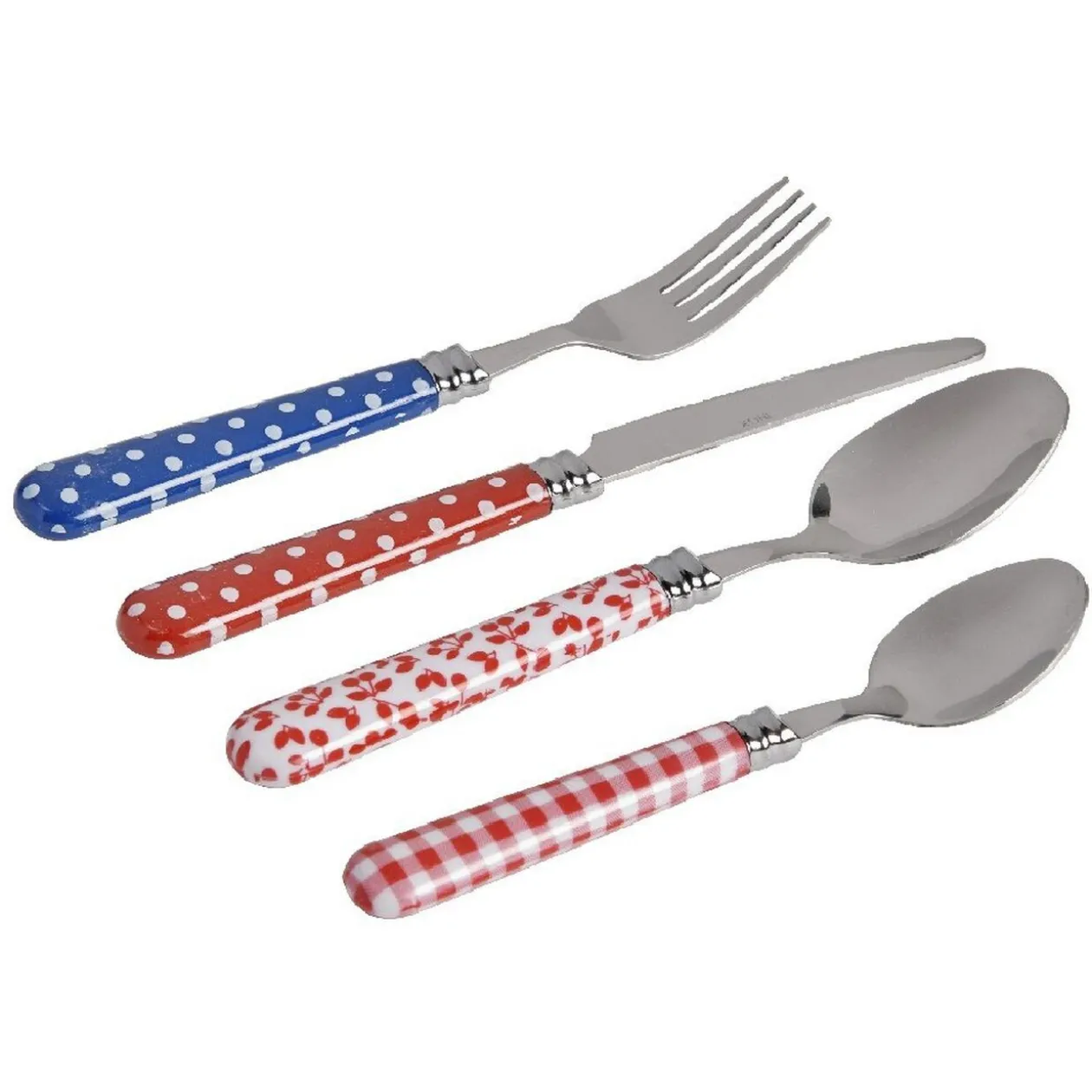 Manche en plastique au design coloré esprit guinguette bleu et rouge, idéal pour tous les jours ou pour une jolie table de réception.