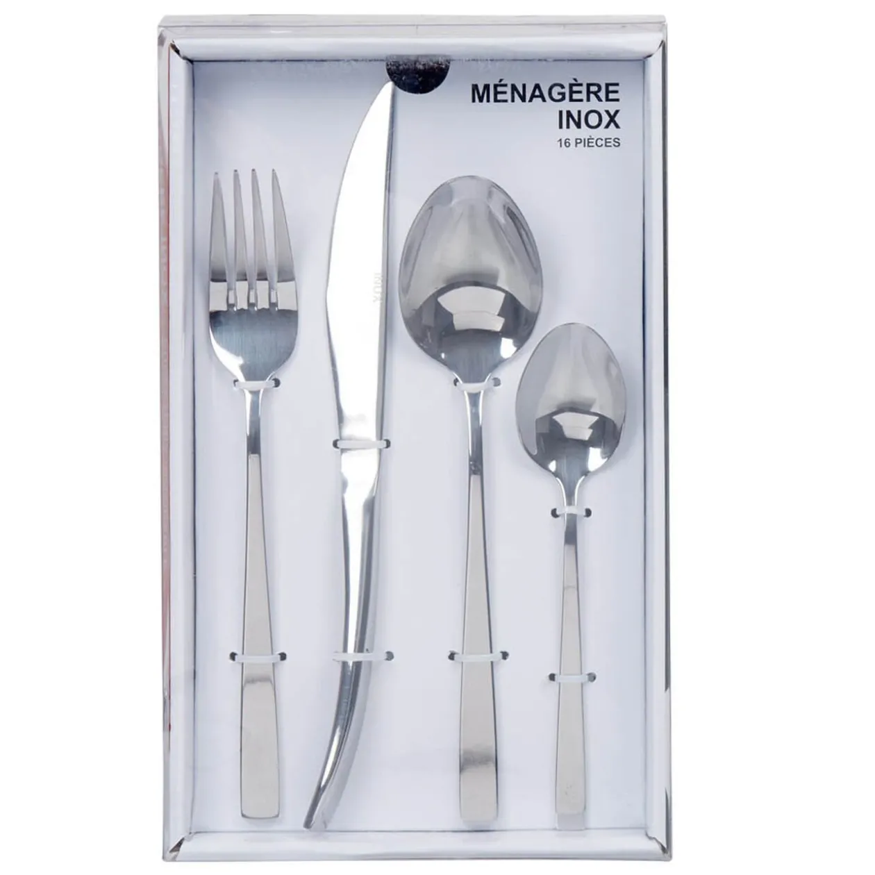 Cette ménagère hotelière comprend 16 pièces en inox :