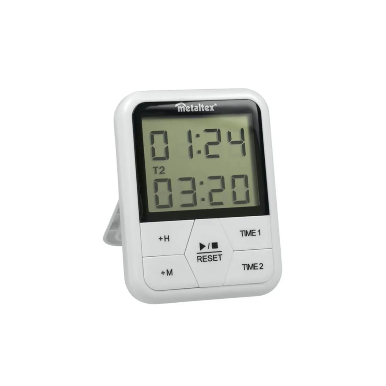 Minuteur 24 H Metaltex digital double, aimanté avec support. Fini les mauvais timing !
