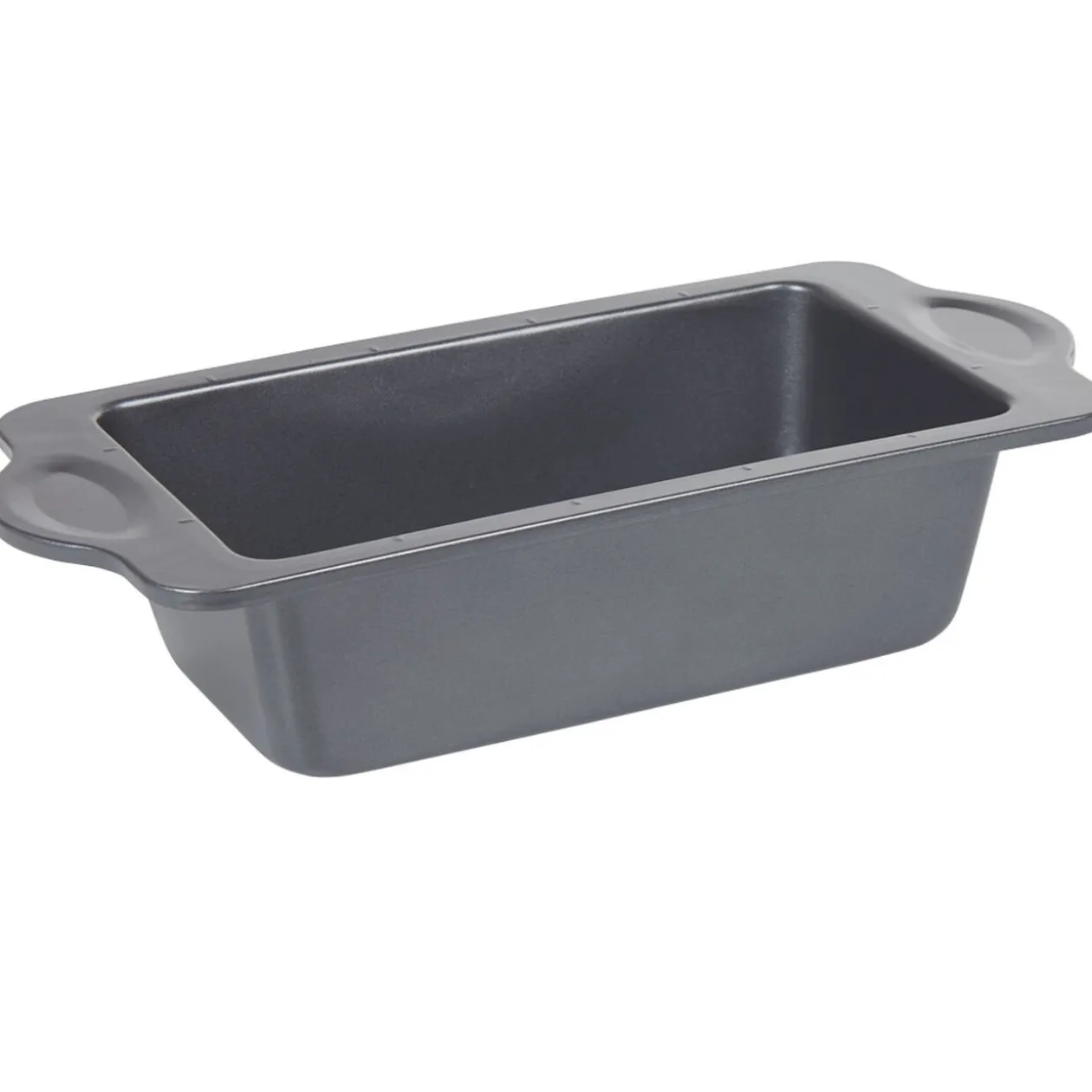 Moule à cake en métal gris avec revêtement à fond texturépour un démoulage facile!
