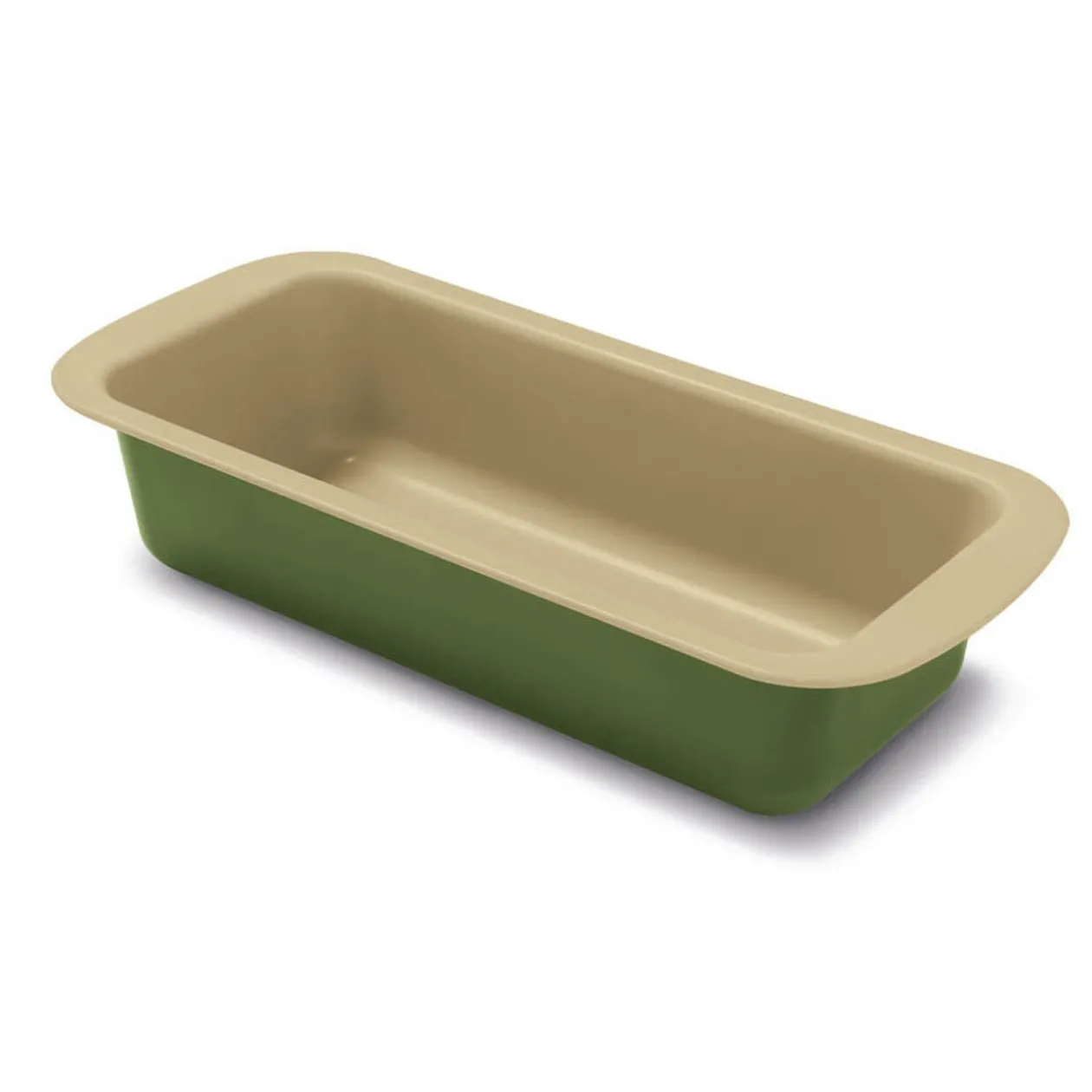 Ne louper vos cakes grâce à ce moule rectangulaire de couleur beige à l’intérieur et vert foncé à l’extérieur.
