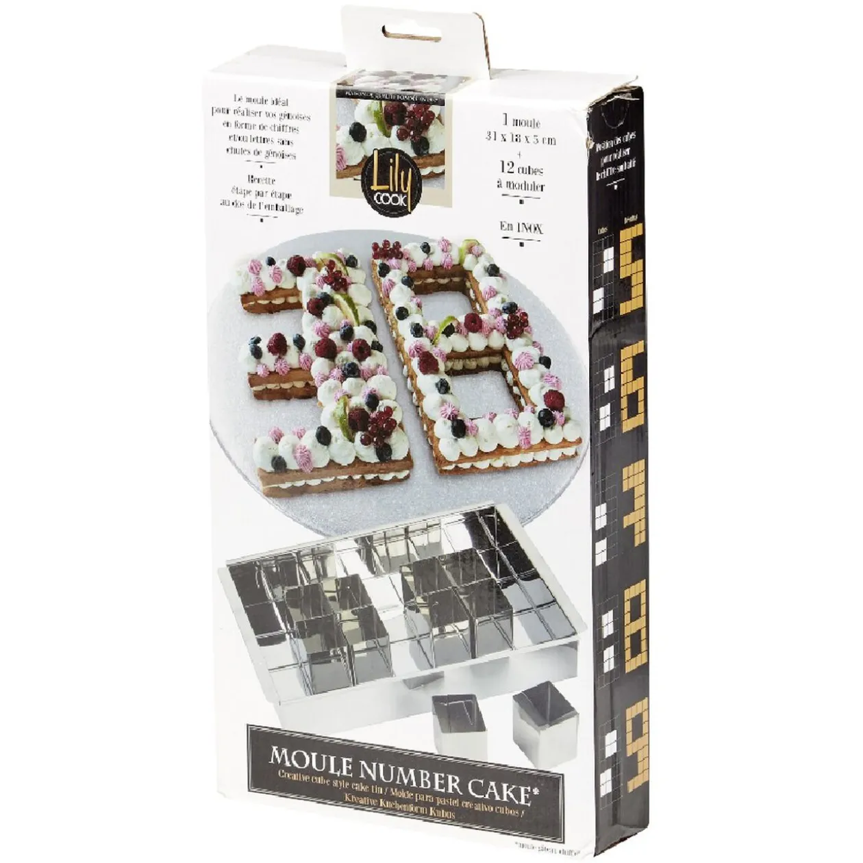 Simple d’utilisation, le moule rectangulaire est accompagné de plusieurs cubes à disposer de sorte à créer le chiffre souhaité, puis versez la pâte et enfournez.