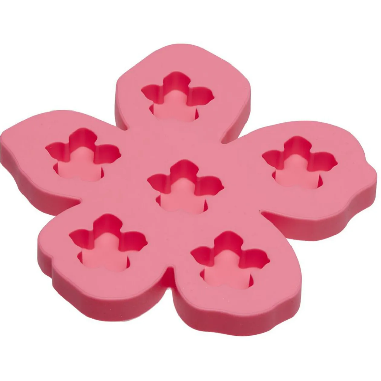 Moule à glaçons en silicone rose en forme de fleur. Pour 6 glaçons en forme de fleur.