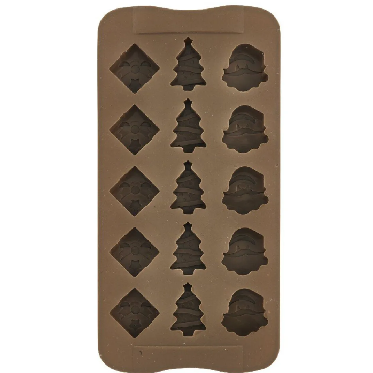 Révélez votre talent de pâtissier avec ce moule de Noël marron. Sa couleur montre déjà à quel point vos petits chocolats seront appétissants. Ce moule est doté de 15 compartiments en forme de sapin, de bonhomme de neige et de père Noël, de quoi faire chavirer le coeur de vos invités et régaler leurs papilles. Fabriqué en silicone, ce moule est très maniable et vos chocolats seront faciles à démouler.